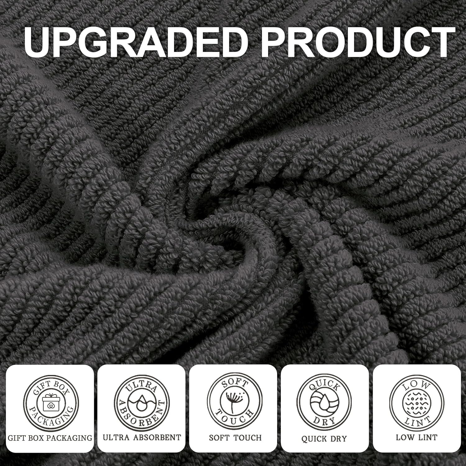 VOOVA & MOVAS Gray Towels - 100% Cotton | Lightweight | Quick Dry | Thick | Soft, Towel Set of 6, 2 Large Bath 30" x 56", 2 Hand 18" x 28", 2 Washcloths 13" x 13", Towel Gift Set, Dark Grey