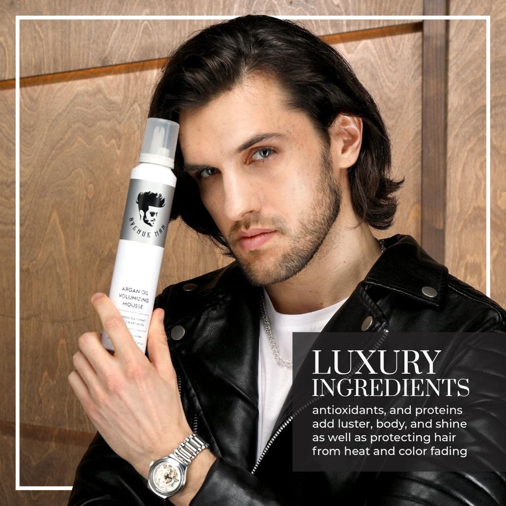 Avenue Man Argan Oil Mousse - Thickening & Volumizing Mousse for Men - Strong Hold, Frizz Control & Humidity Resistance - Herbal-Infused Mens Hair Foam - Long-Lasting Hair Mousse for Men (6.0 oz)