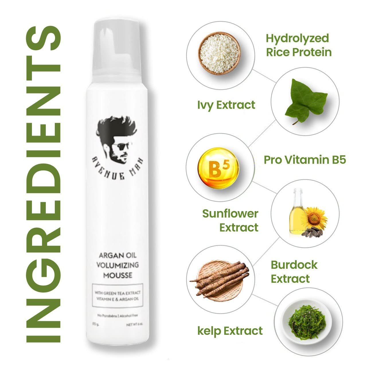 - Infused With Premium Herbal Extracts for Stronger Hair: More than just a styling product - this men hair mousse fortifies and nourishes your hair with a potent blend of argan oil, green tea, ginseng, and vitamin E. Argan oil deeply hydrates and restores shine, while aloe vera and chamomile provide soothing moisture, keeping hair healthy, soft, and resilient