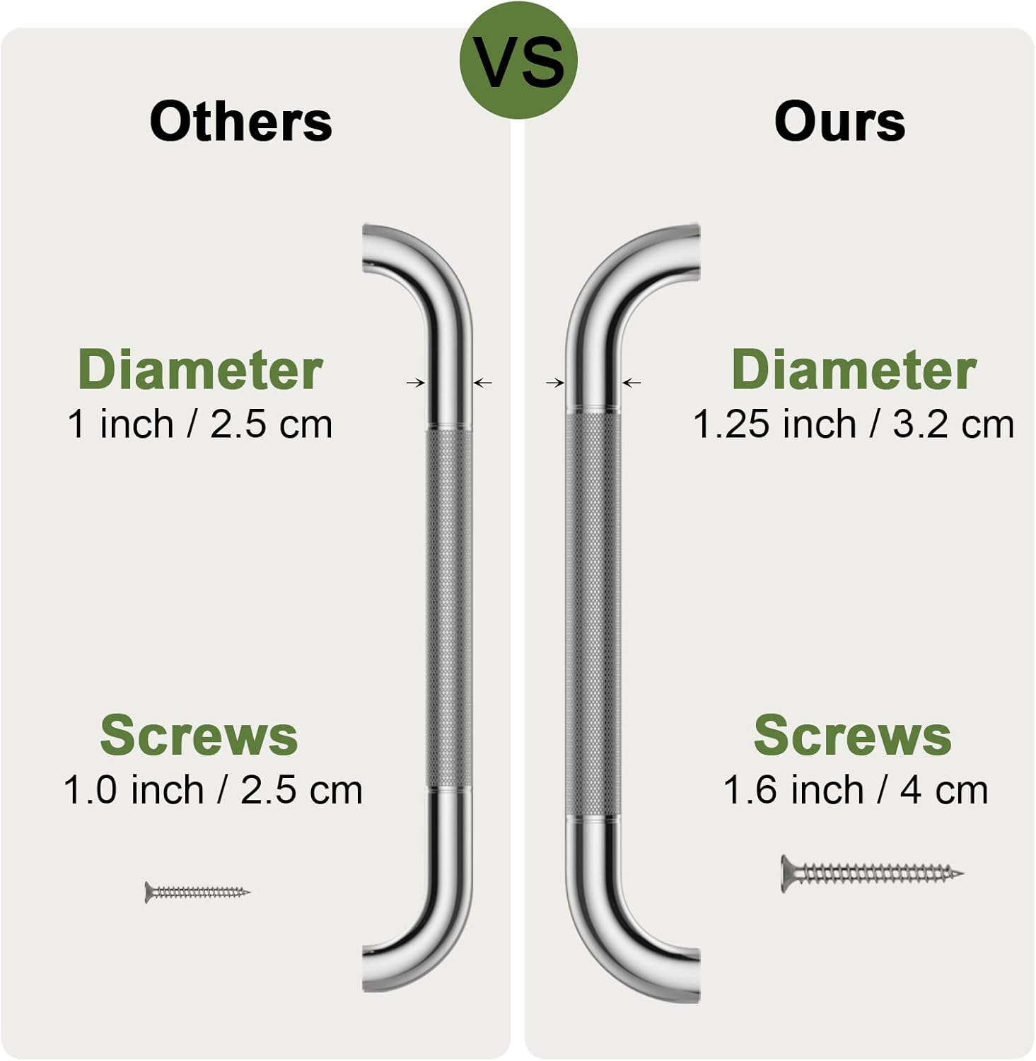 - Munzong 24 inch knurled surface bathroom shower grab bars (1.25 inch diameter) are able to support up to 500 lbs of pull force to provide a stable, reliable handhold; Made of anti-rust stainless steel for a lasting strength and quality.