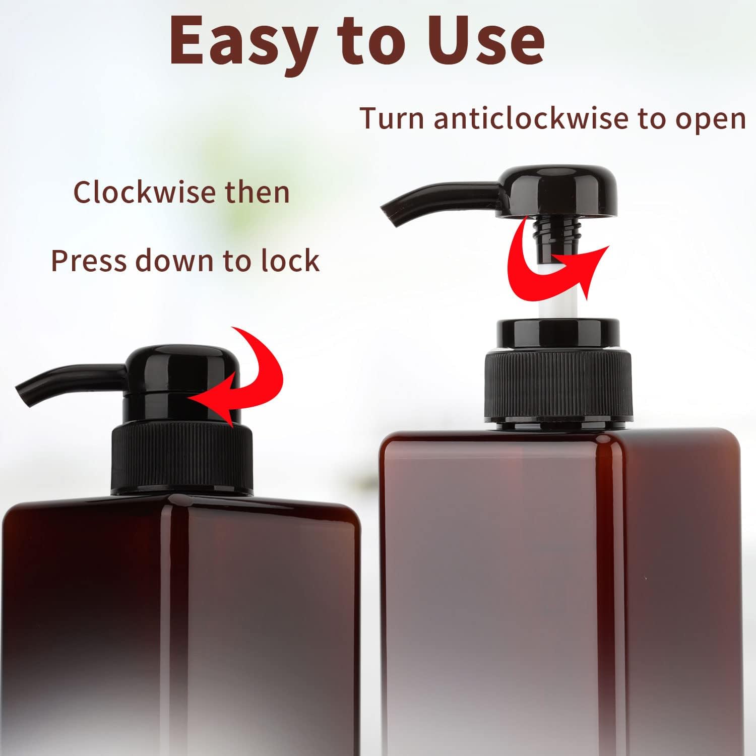 450ml (15.2oz) Pump Bottle Dispenser Jansburg 2Pack Refillable Square Plastic Lotion Dispenser Empty Lotion Pump Bottle for Essential Oil Soap Lotion Shampoo, Bathroom/Kitchen/Travel Amber