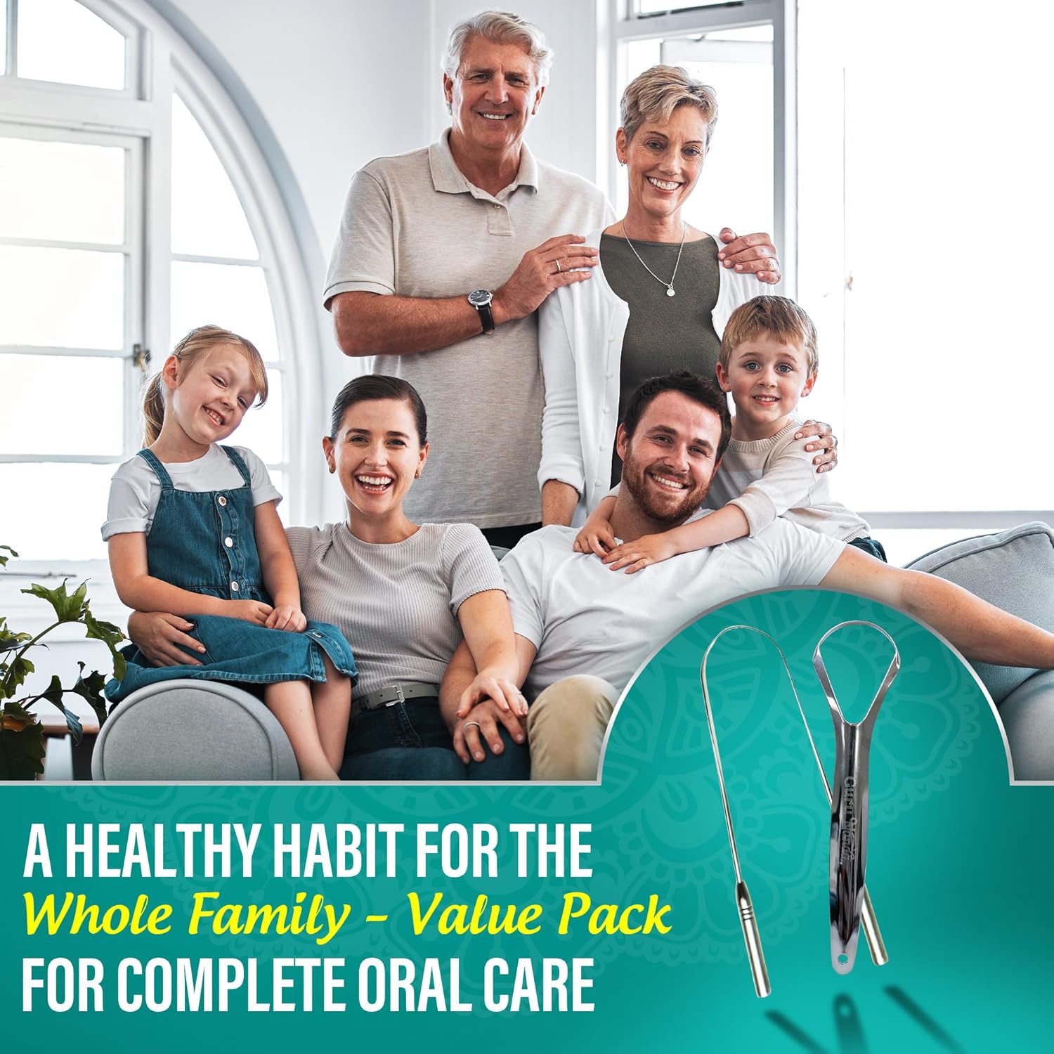 - STAINLESS STEEL TONGUE SCRAPER FOR DURABILITY: Made with 420 medical grade steel, the tongue scraper is rust-proof and stain-resistant, helping you clean plaque gently for an improved sense of taste.