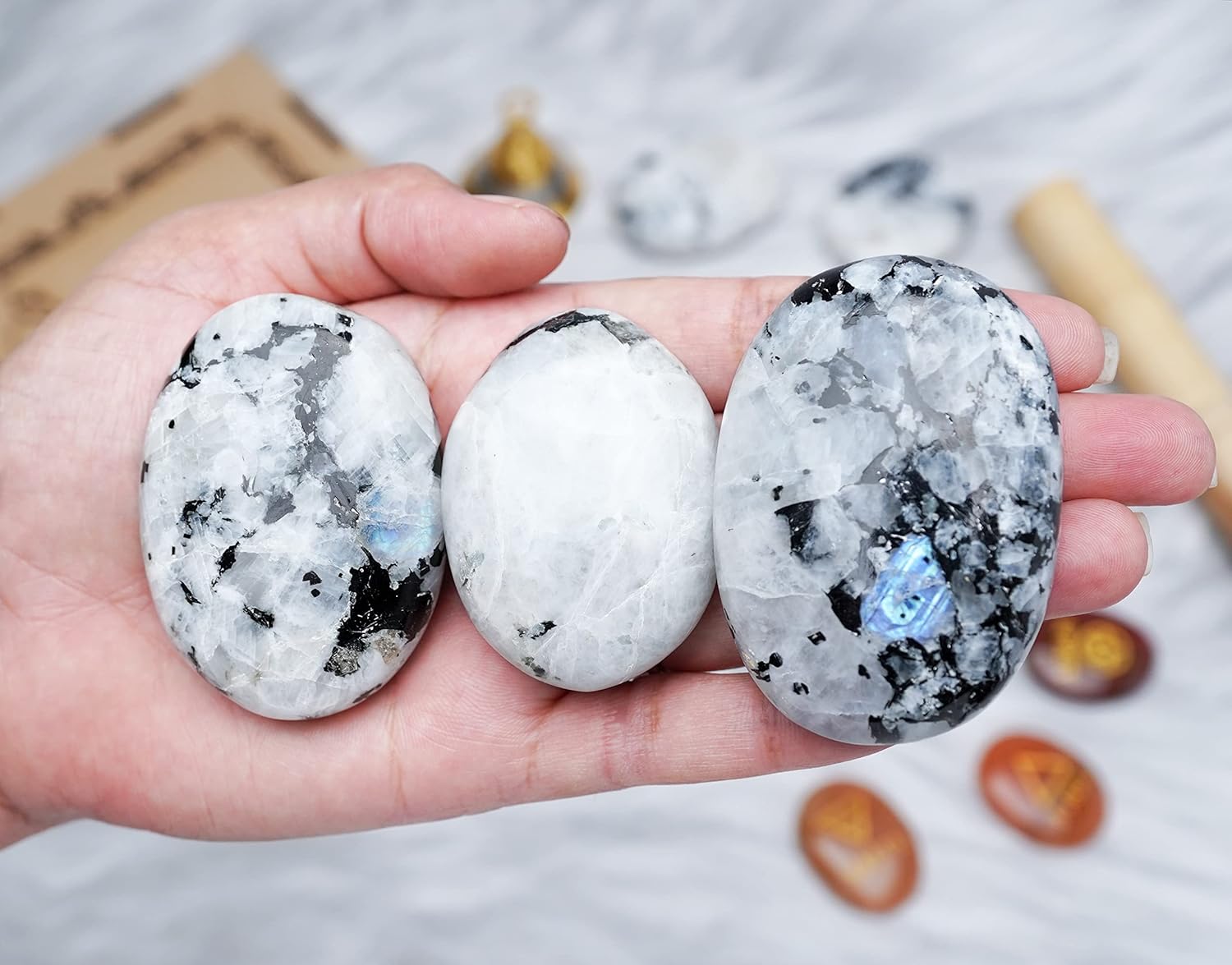 Crocon 50mm Rainbow Moonstone Large Oval Palm Stone 900+ Carats Pocket Massage Worry Stones for Natural Body Chakra Balancing Reiki Healing Stones and Crystal Grid Healing Massage Spa Energy Crystals