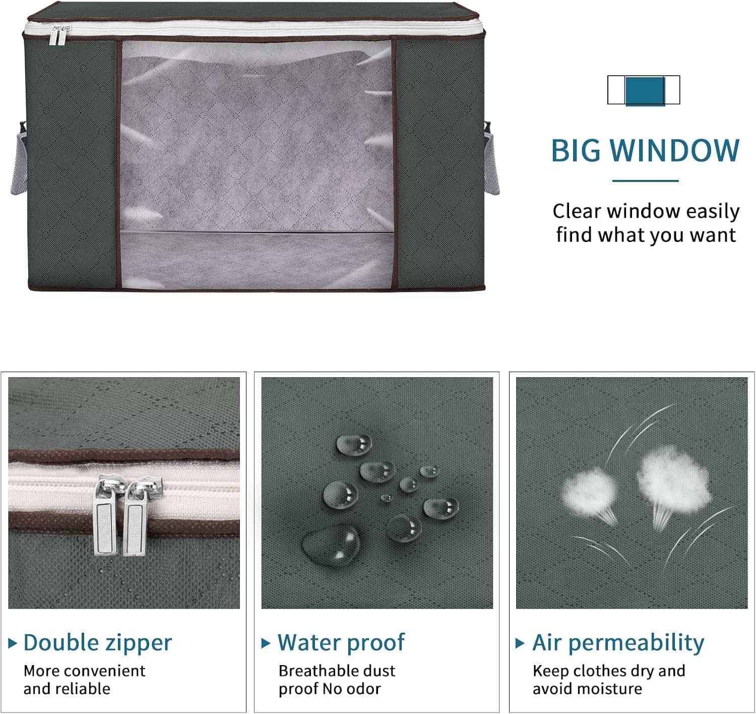- Large Capacity: Each storage bag measures 23 x 16 x 13 inch (60 x 45 x 35 cm). The organizer capacity is 90 L. It is spacious for your comforters, blankets, pillows, plush toys, jackets or other clothes