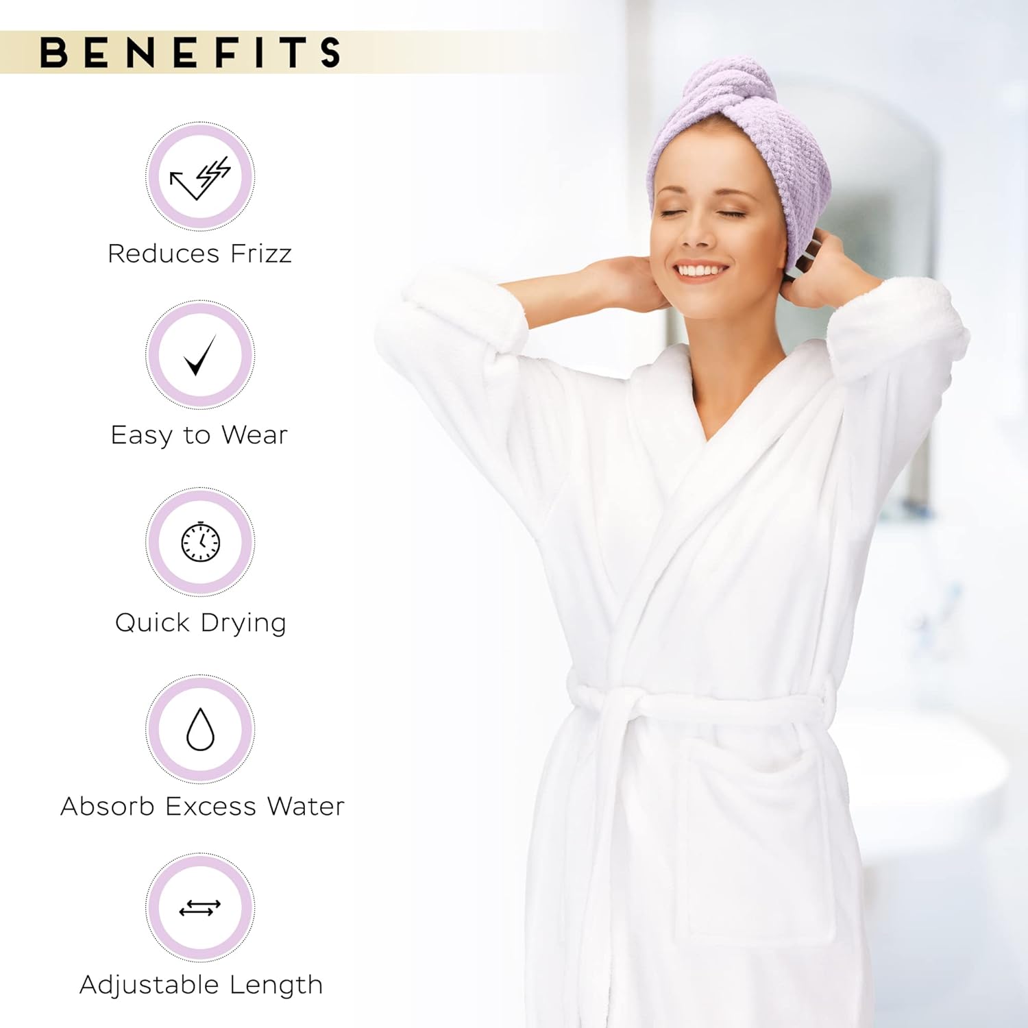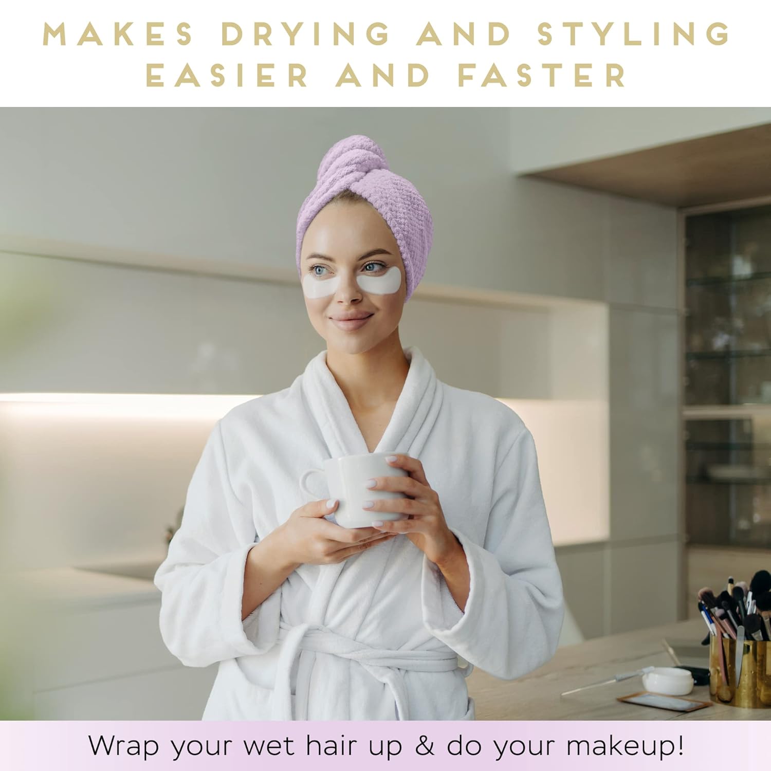 2 Pack Microfiber Hair Towel Wrap for Women, Anti Frizz Quick Drying Hair Turban for All Hair Style, Absorbent and Lightweight (Light Purple)