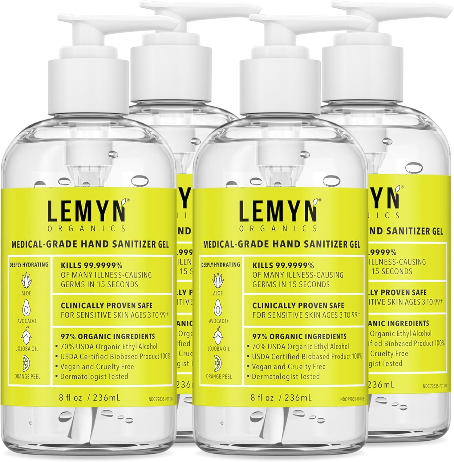 Medical Grade Hand Sanitizer Gel - 97% ORGANIC - 8 FL.OZ. with PUMP (PACK OF 4)
