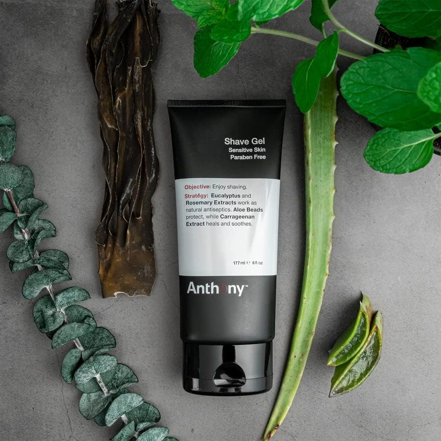 Anthony Shave Gel for Sensitive Skin – Non-Foaming, Soothing Shaving Cream for Men and Women. With Aloe Vera Beads, Eucalyptus, Rosemary and Carrageenan Extract - 6 Fl Oz (3 Pack)
