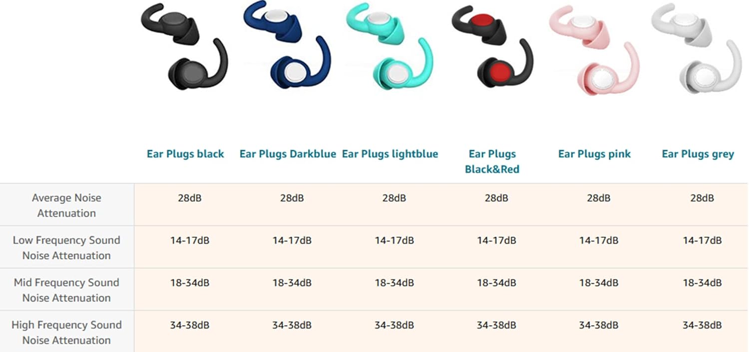 - Ear Plugs for noise reduction, sound blocking noise reduction rating 14-38 dB, from low to high frequency of noise sounds, these multi-use earplugs ensure to protect your hearing from loud noise, great for sleeping, snoring, swimming, swimmers, studying, shooting, airplane travel, loud events, concerts, musicians, motorcycles, etc