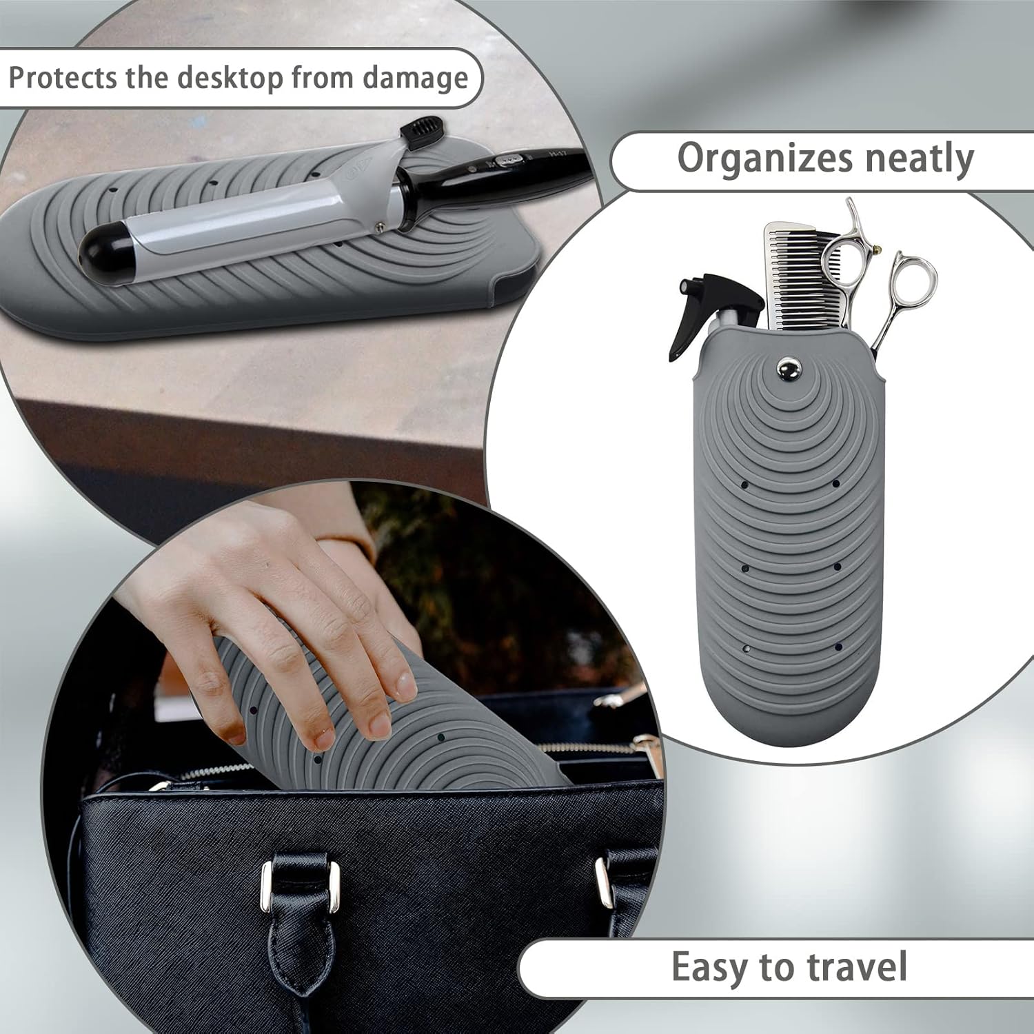 Heat Resistant Silicone Mat Pouch for Hair Styling Tools, Curling and Flat Irons Non-Slip Travel Cover, Small Portable Straightener Pad for Curler Wands Storage, Hot Waver (Dark Gray)