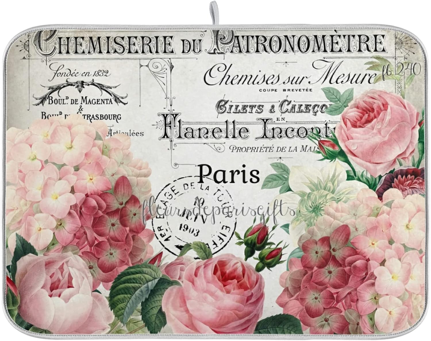 Vintage Pink Rose Flower Dish Drying Mats for Kitchen 18x24 inch Drying Mat Absorbent Microfiber Dish Mat Drainer Rack Mats Fast Dry for Kitchen Counter
