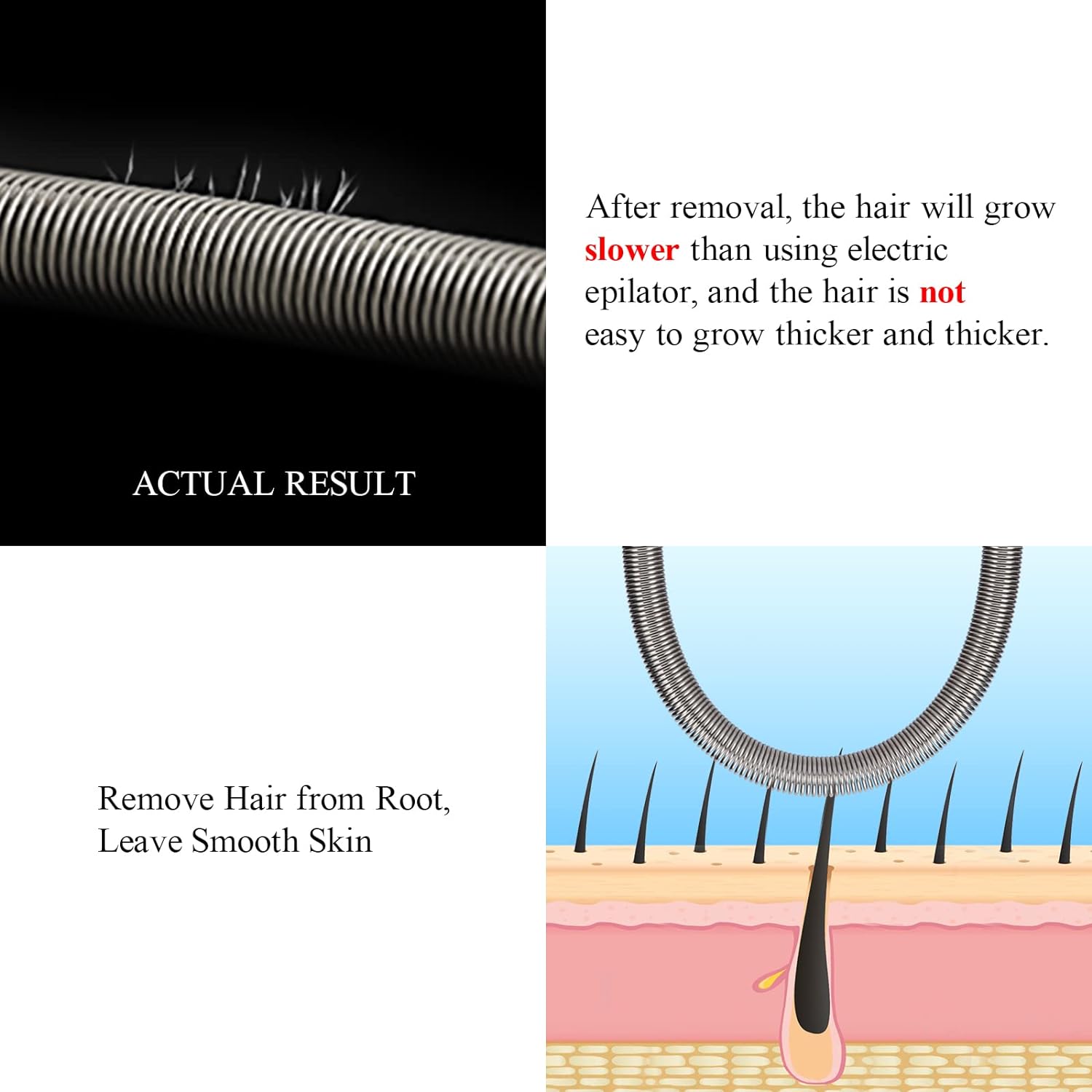 - Remove Hair from Root, Leave Smooth Skin - Our hair removal spring can deal with your coarse thick hair over chin and upper lip! After removal, the hair will grow slower than using electric epilator, and the hair is not easy to grow thicker and thicker. Say goodbye to scratchy face!