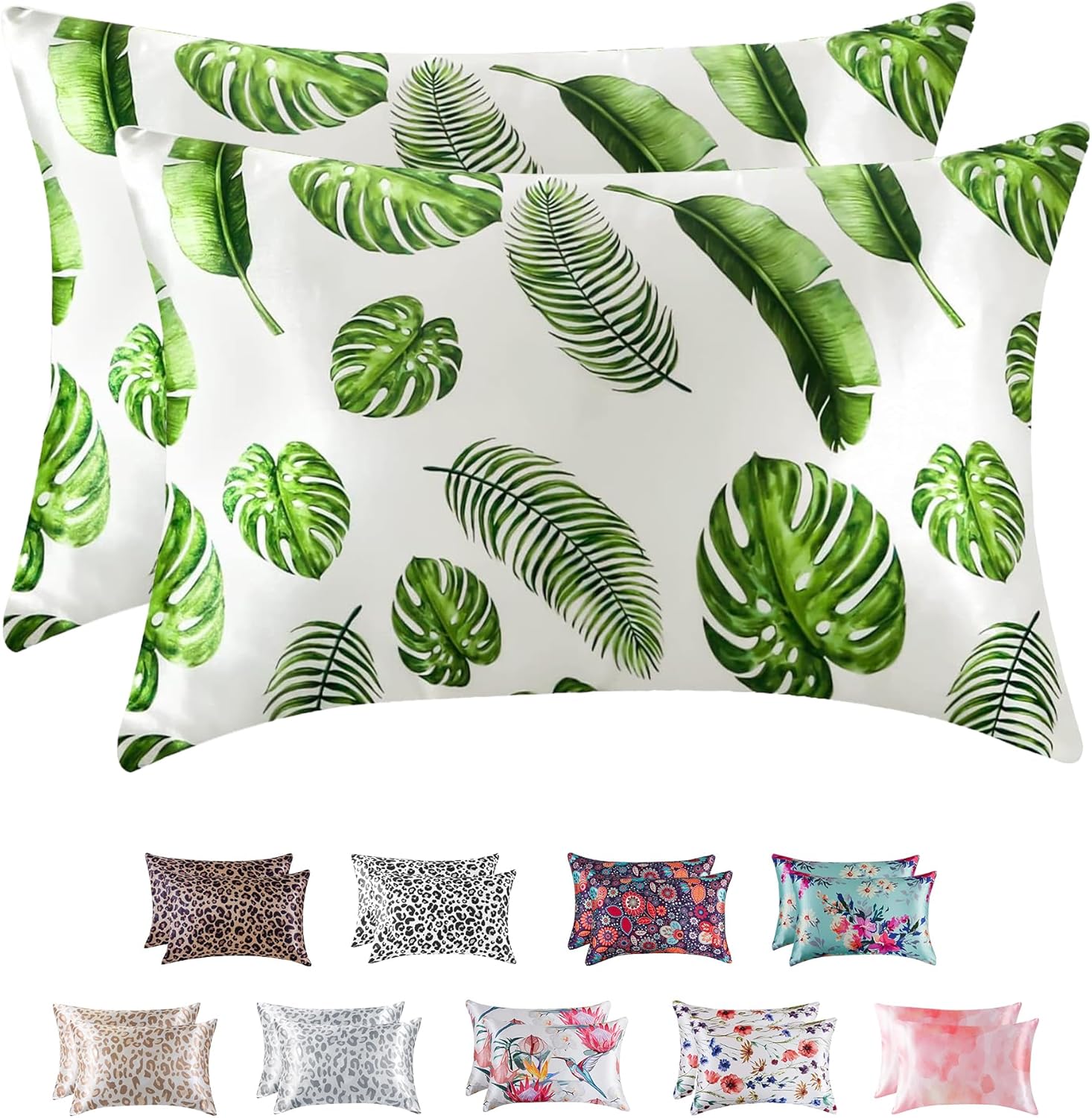 MR&HM Satin Pillowcase for Hair and Skin, Silk Satin Pillowcase 2 Pack, King Size Pillow Cases Set of 2, Silky Pillow Cover with Envelope Closure (20x40, Leaves)