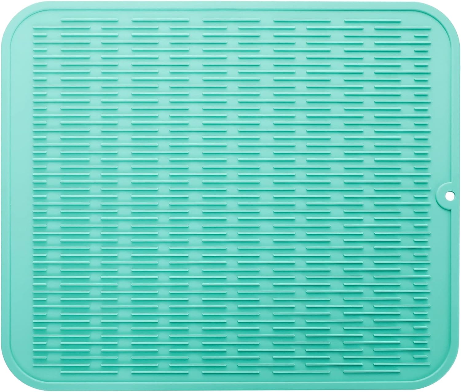Silicone Dish Drying Mat for Multiple Usage,Easy clean,Eco-friendly,Heat-resistant Silicone Mat for Kitchen Counter or Sink,Refrigerator or Drawer Liner Mint XL 18 inches x 16 inches