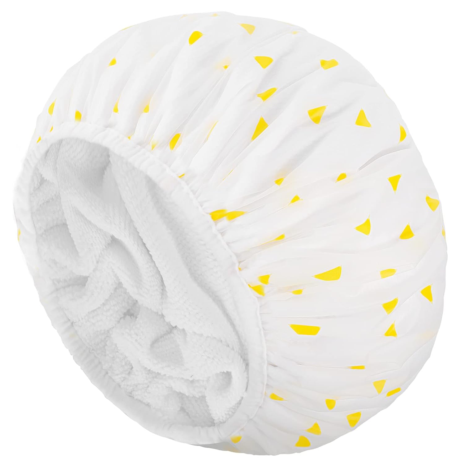 Auban Shower Cap, Shower Cap for Women Terry Cloth Lined EVA Exterior Reusable Double Layer Waterproof, Large Bath Hair Cap for All Hair Lengths (Yellow)