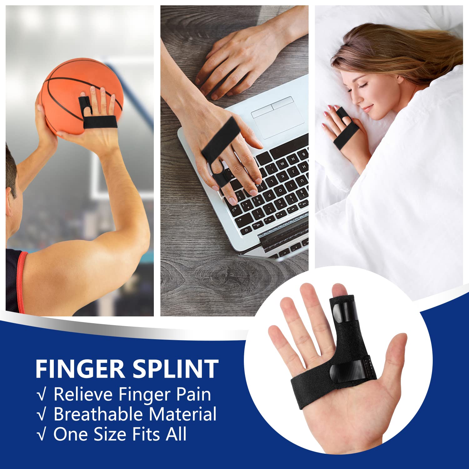 - Precision Protection for Every Finger - Secure index, middle, ring, or pinky fingers with adjustable comfort! Pair the splint’s built-in aluminum bar with gel sleeves for smaller fingers, offering targeted relief for arthritis, sprains, or sports injuries.