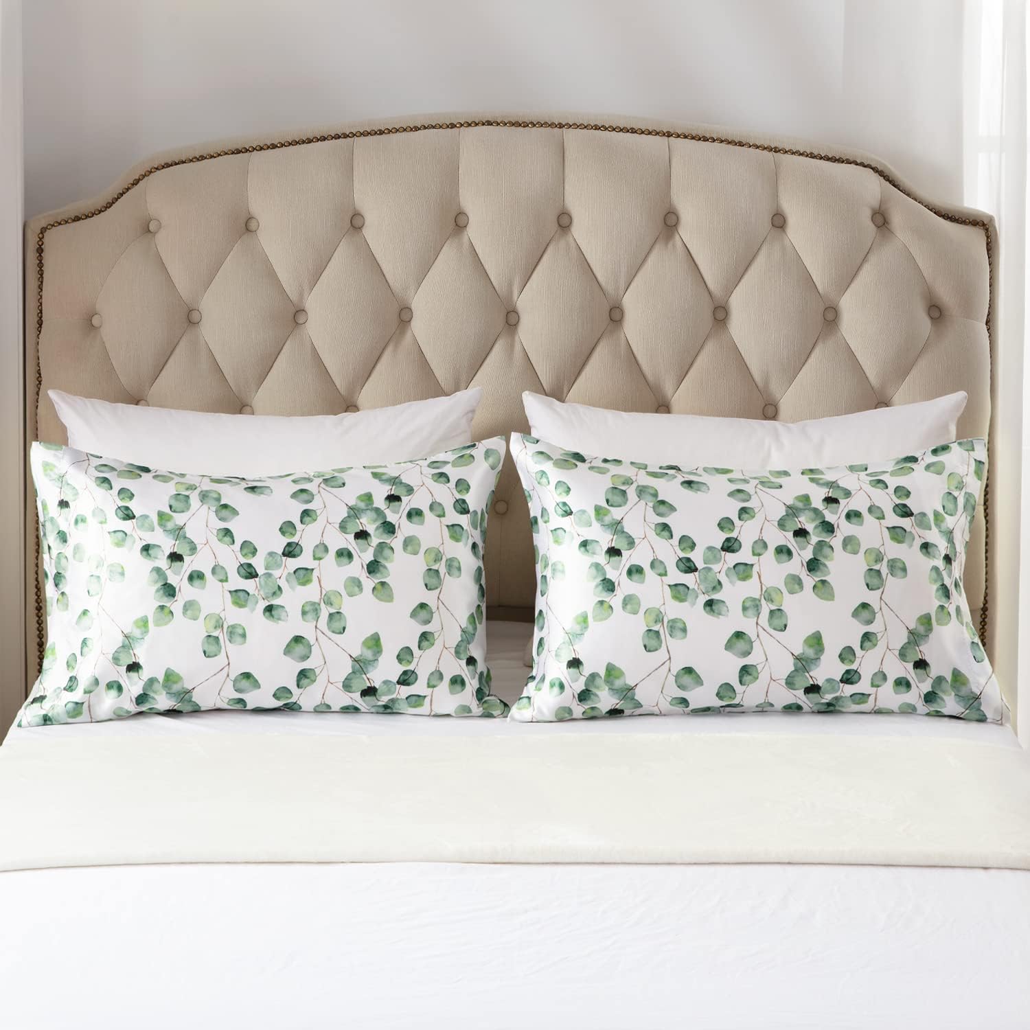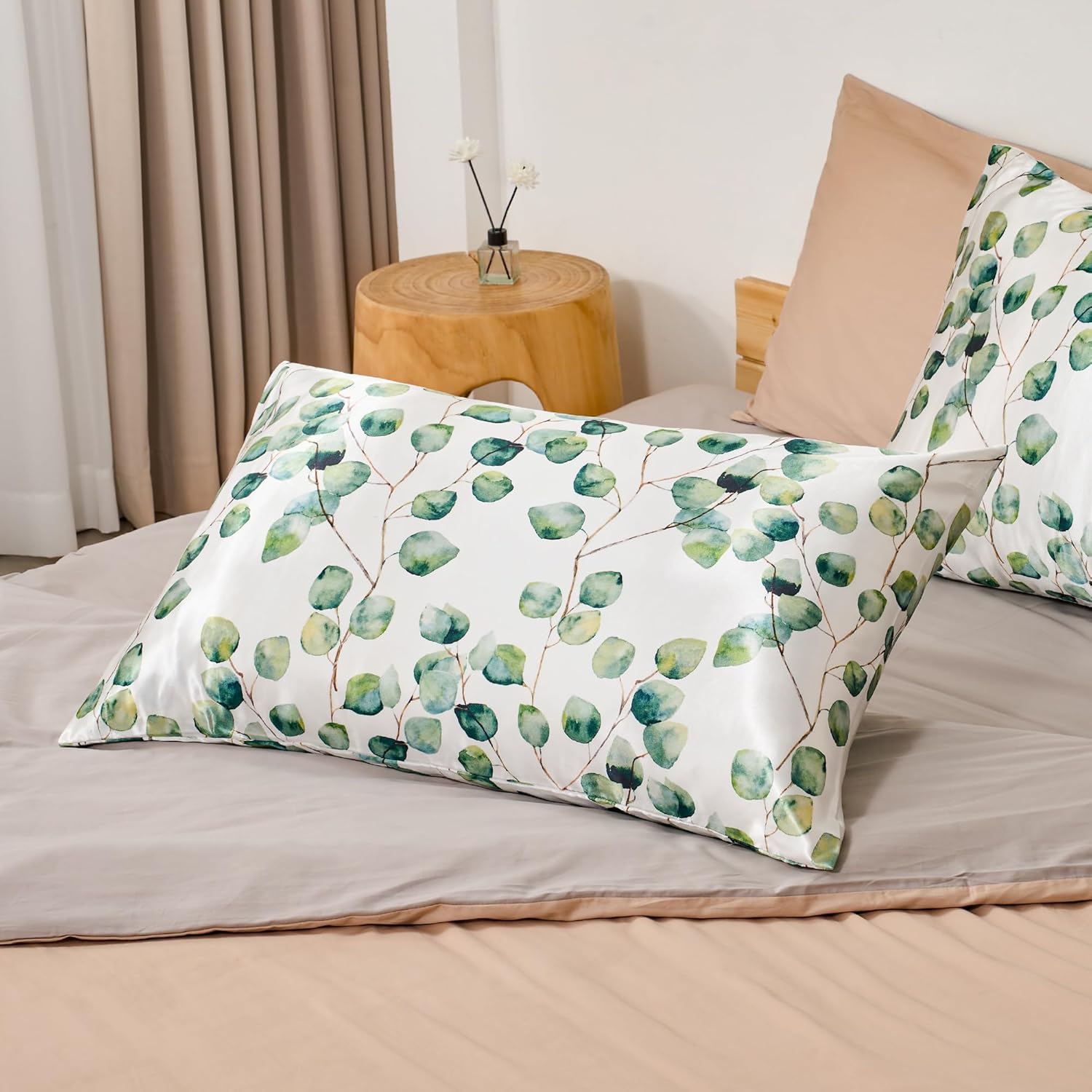 EXQ Home Satin Pillowcase for Hair and Skin,Cooling Printed Pillow Cases King Size Pillow Case Set of 2,Printed Satin Pillow Covers with Envelope Closure(Ink Leaf,20x40 inches)