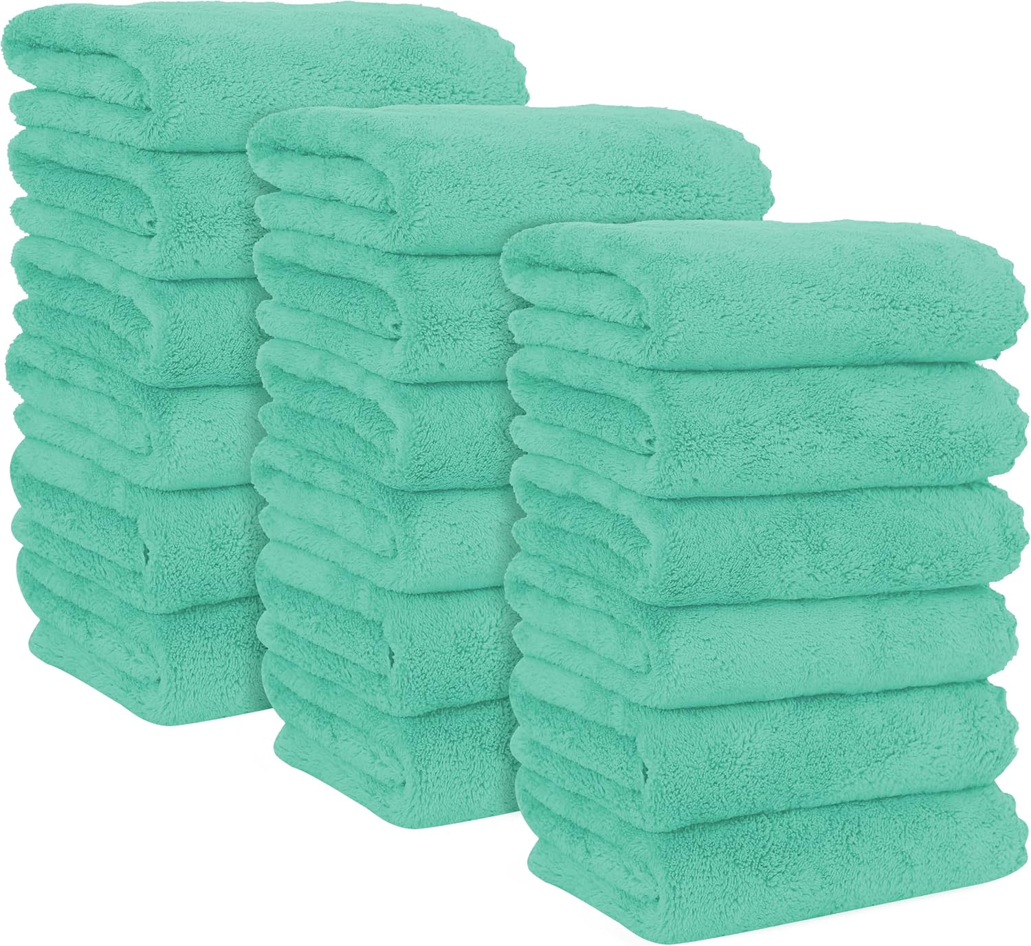 MOONQUEEN 18 Pack Premium Hand Towels - Quick Drying - Microfiber Coral Velvet Highly Absorbent Towels - Multipurpose Use as Hotel, Bathroom, Shower, Spa, Hand Towel 16 x 28 inches (Aqua Green)