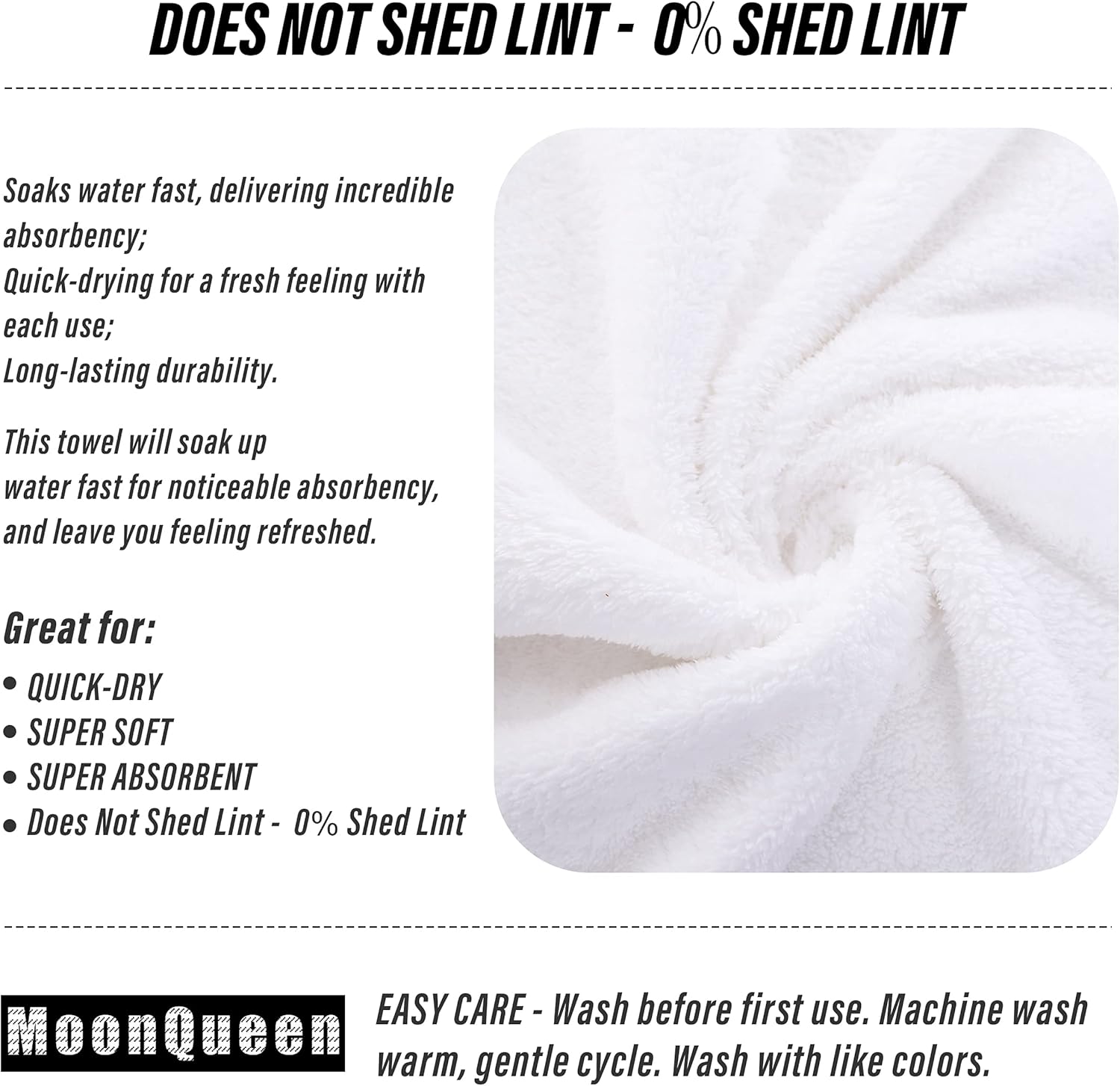 - 【0% Shed Lint】MOONQUEEN User friendly Microfiber coral velvet Widely Used in Options- These quick dry small towels are versatile plush fabric towel, Perfect for poolside, bathroom, Beach, salon, college dorm room essentials , spa, wedding resgisry or gym use. The towel set is designed to provide users with all their basic bathroom drying needs to wrap around your hair or to dry your body.