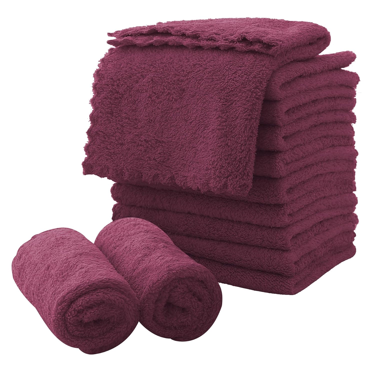 MOONQUEEN Microfiber Facial Cloths Fast Drying Washcloth 12 Pack - Premium Soft Makeup Remover Cloths - Burgundy