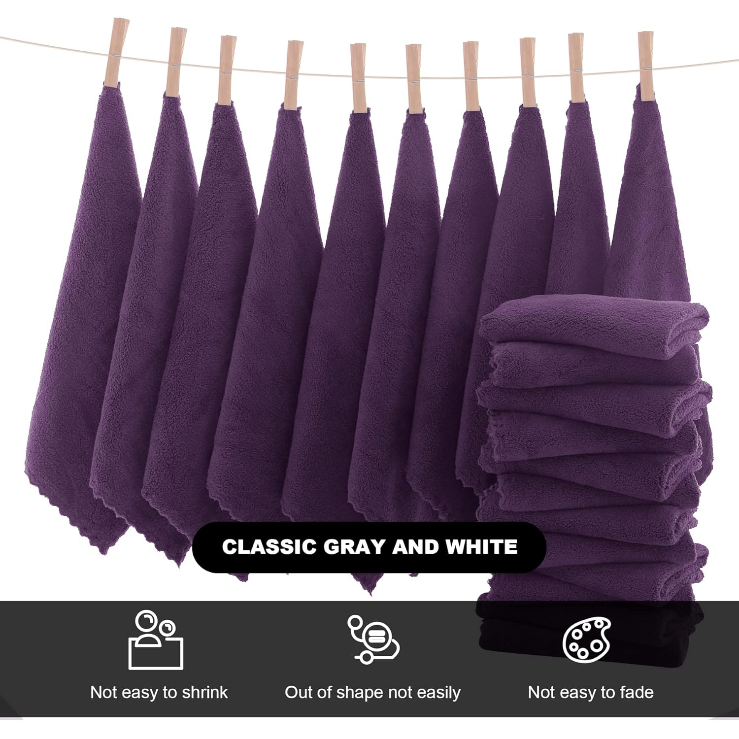 MOONQUEEN Microfiber Facial Cloths Fast Drying Washcloth 12 Pack - Premium Soft Makeup Remover Cloths - Grape Purple