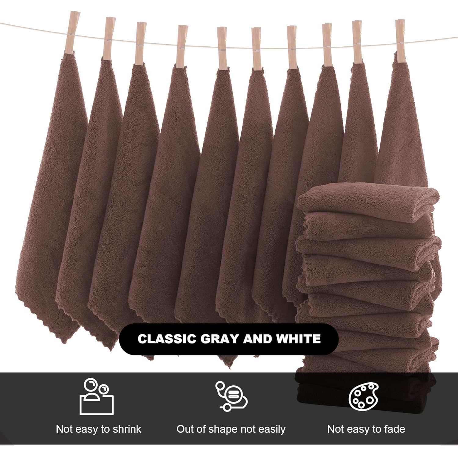 MOONQUEEN Microfiber Facial Cloths Fast Drying Washcloth 12 Pack - Premium Soft Makeup Remover Cloths - Wood Brown
