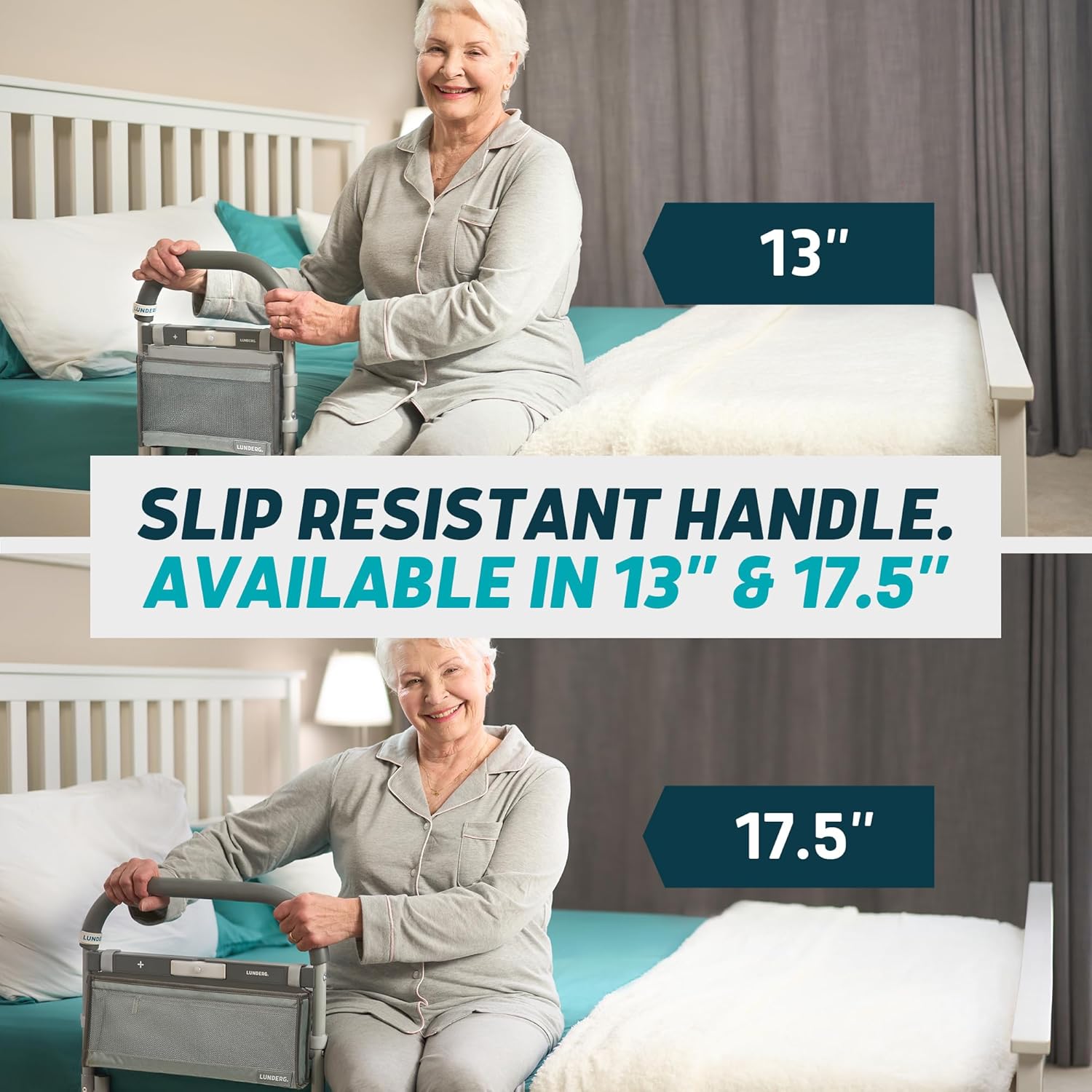 Lunderg Bed Assist Rail for Seniors with Motion-Activated Light & Storage Pocket - Easy to Install Bed Rails for Elderly Adults Safety & Post-Surgery - Helps Reduce Falls & Support Independence