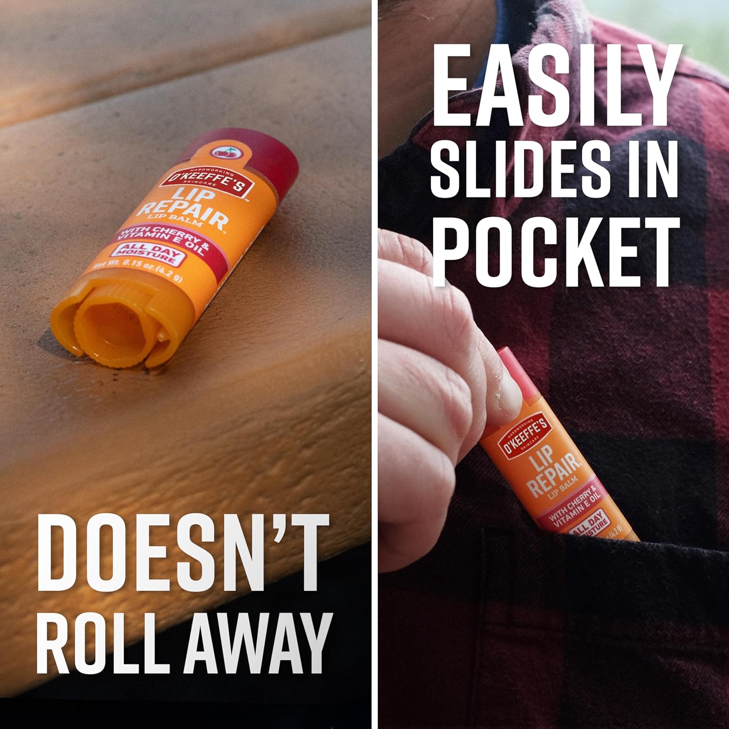 - Lip repair for dry cracked lips: O’Keeffe’s Lip Repair Lip Balm with cherry and vitamin E oil is a lip balm that heals, relieves and repairs extremely dry lips with a blend of seven moisturizing ingredients