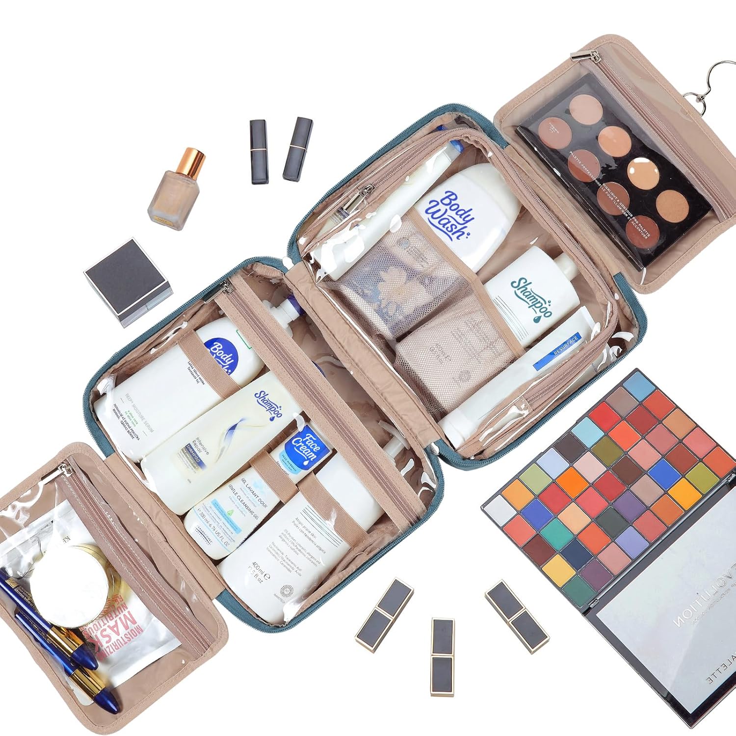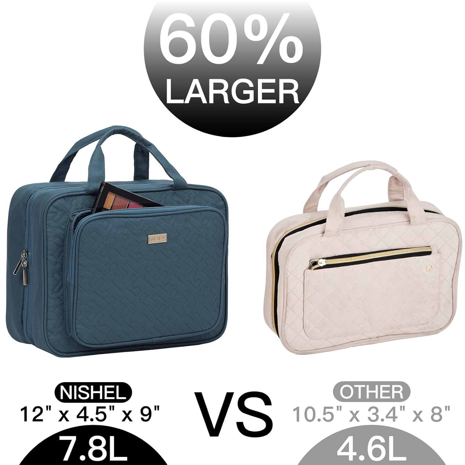 NISHEL Travel Toiletry Bag for Women Large Capacity, Makeup Essentials Organizer, Hanging Case for Accessories, Cosmetics, Lake-Blue