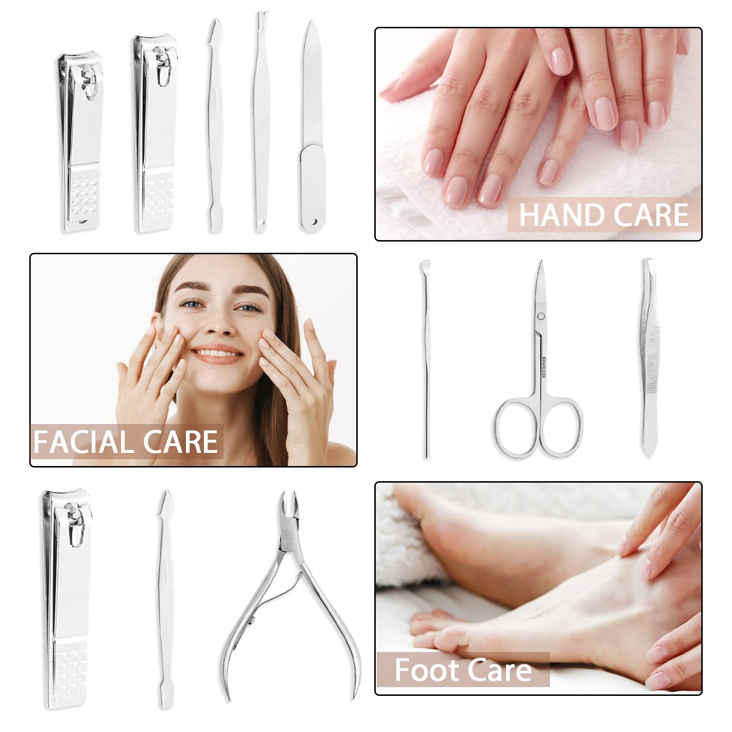 - 【MULTIFUNCTION PEDICURE TOOLS & MANICURE TOOLS】: FAMILIFE 9PCS nail set has everything you need for hand care, facial care, and foot care.1x Fingernail Clipper, 1xToenail Clipper, 1xCuticle Nipper,1xCuticle Knife, 1xDouble-sided Push Stick, 1xManicure Scissors, 1xNail File,1xTweezers, 1x Ear Pick. Your best choice for high-quality large accessories
