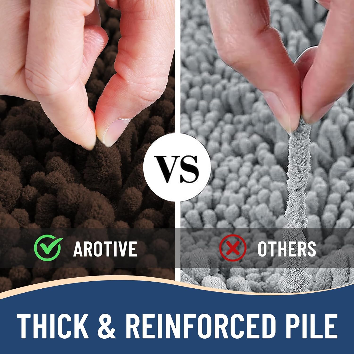 Arotive Luxury Chenille Bathroom Rug Mat, Extra Soft Thick Absorbent Shaggy Bath Rugs, Non-Slip Machine Wash Dry, Plush Bath Mats for Bathroom, Shower and Tub, 60x24, Brown