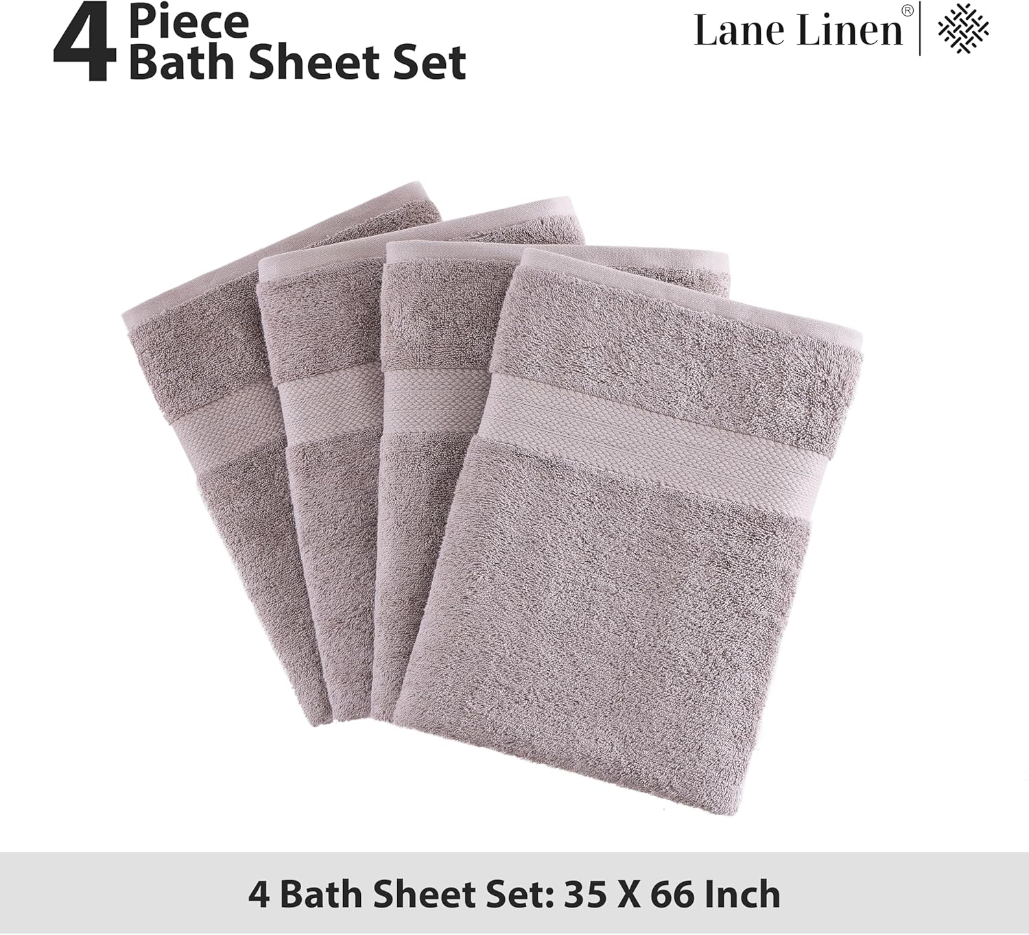 LANE LINEN 100% Cotton Bath Sheets Set of 4 (35"x66") - Ring Spun Cotton Extra Large Bath Towels Sets - Quick Dry, Soft & Absorbent Oversized Grey Towels Set - Pre Shrunk, Fade Resistant - Platinum