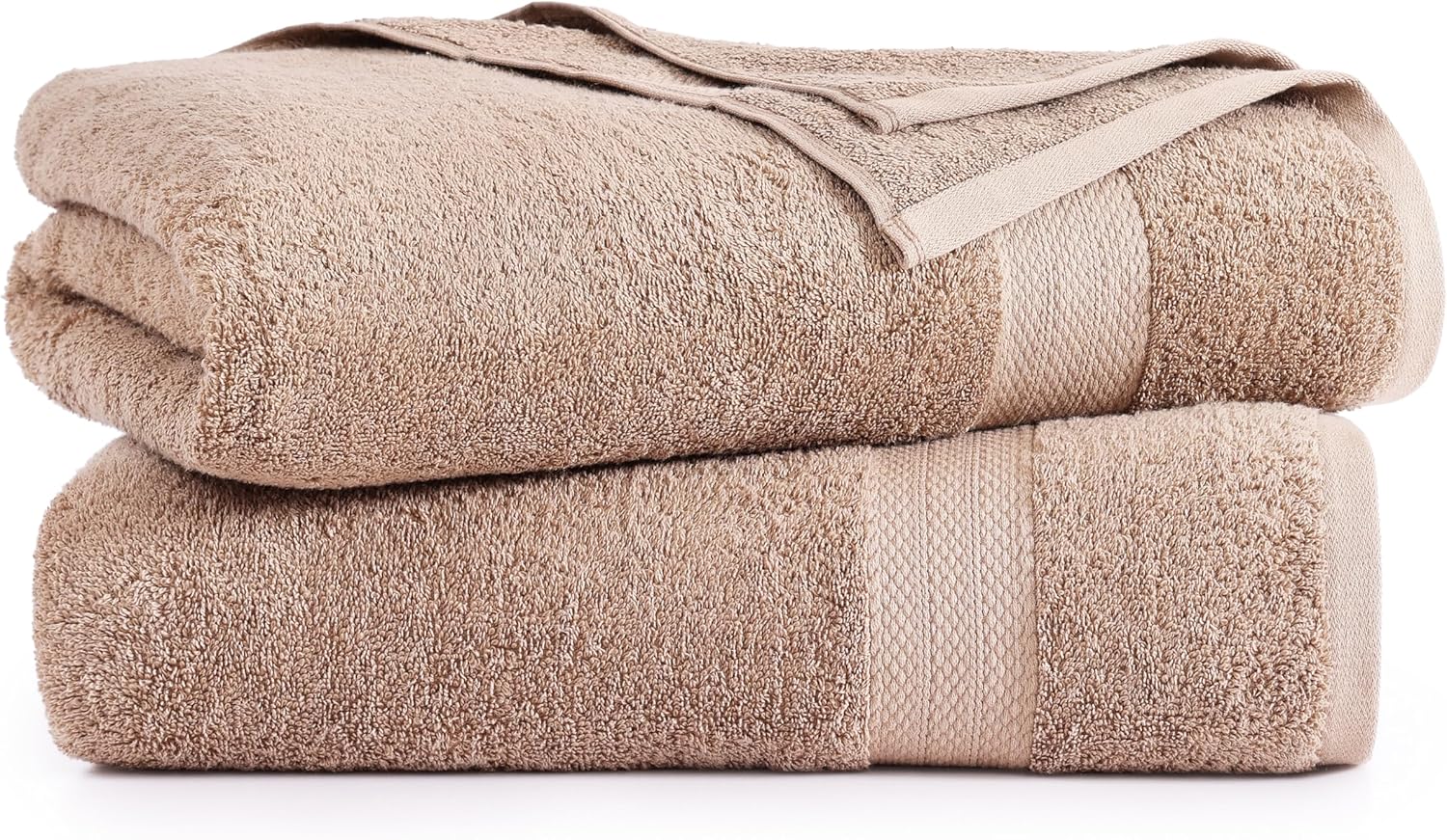 LANE LINEN 100% Cotton Bath Sheets Set of 2 (35"x66") - Ring Spun Cotton Extra Large Bath Towel Sets - Quick Dry, Soft & Absorbent Oversized Luxury Bathroom Towels Set- Sustainabaly Produced - Taupe