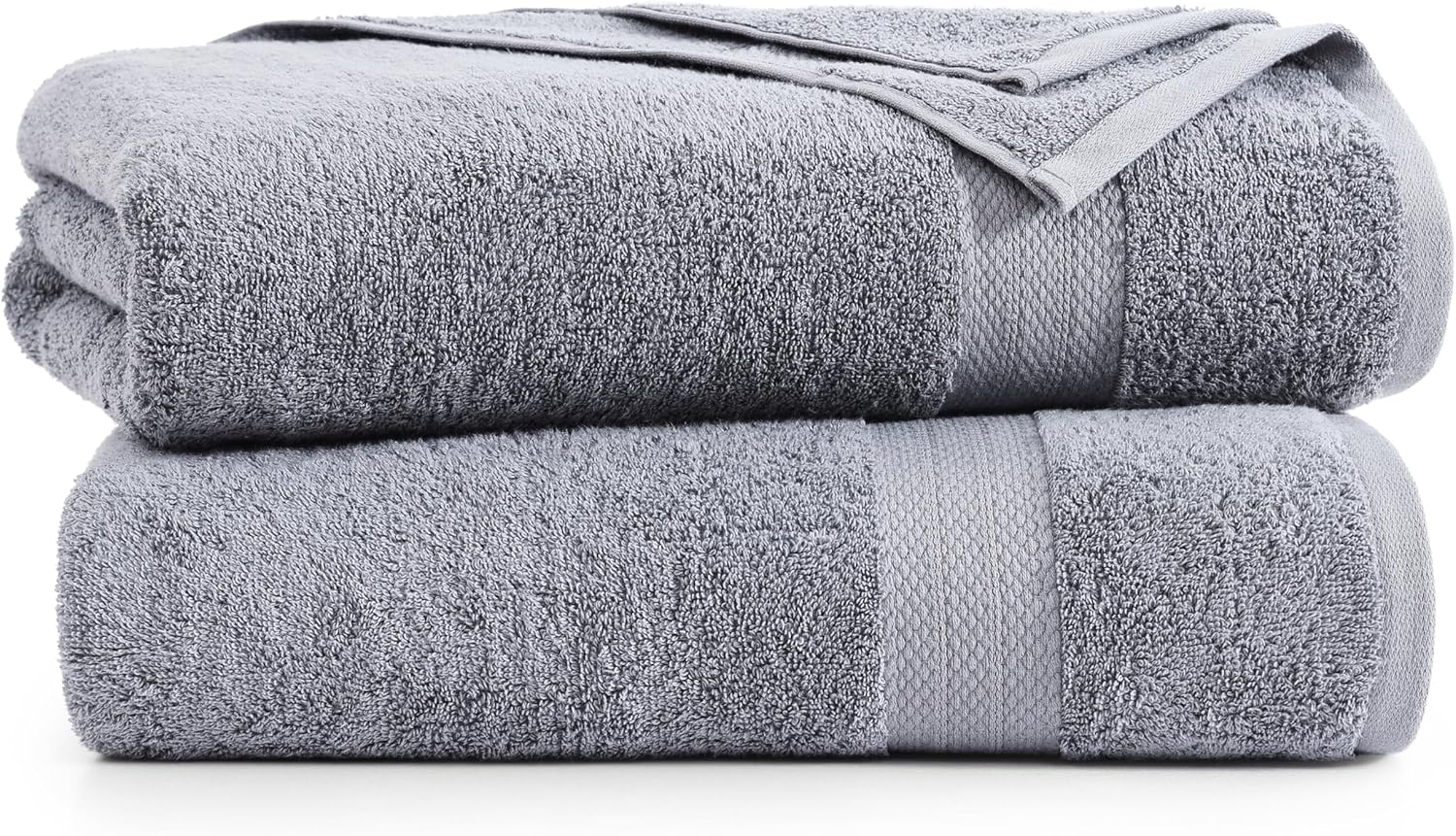 LANE LINEN 100% Cotton Oversized Bath Towels Set of 2 (35"x66") - Ring Spun Cotton Oversized Towels - Quick Dry, Soft & Absorbent Extra Large Bath Towel Set - Dorm Essentials for Girls - Space Grey