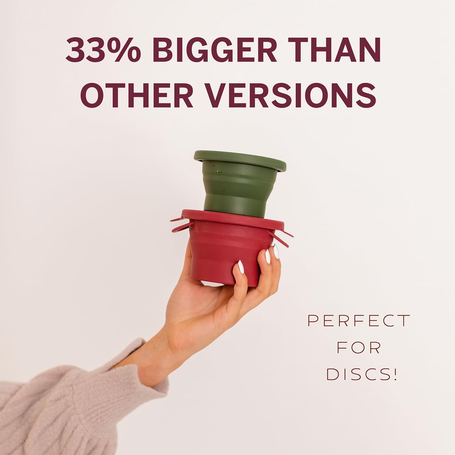 - Compact. It’s collapsible and flat which enables you to slip it in your bag or purse almost unnoticed. Size is compatible with most silicone menstrual cups, discs, and even kegel weights.