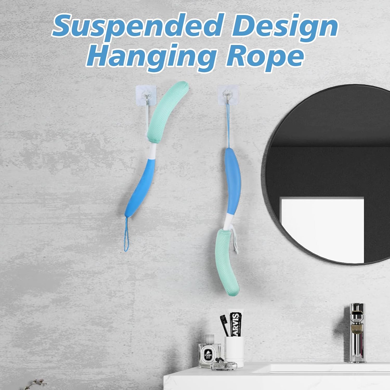 - 【Ergonmic Handle】The long hand curved bath brush unlike other back lotion applicators, this tool features aplastic handle. Stronger and sturdier than other shower brush, this body brush offers long lasting quality. No more awkward bending to reach your back.