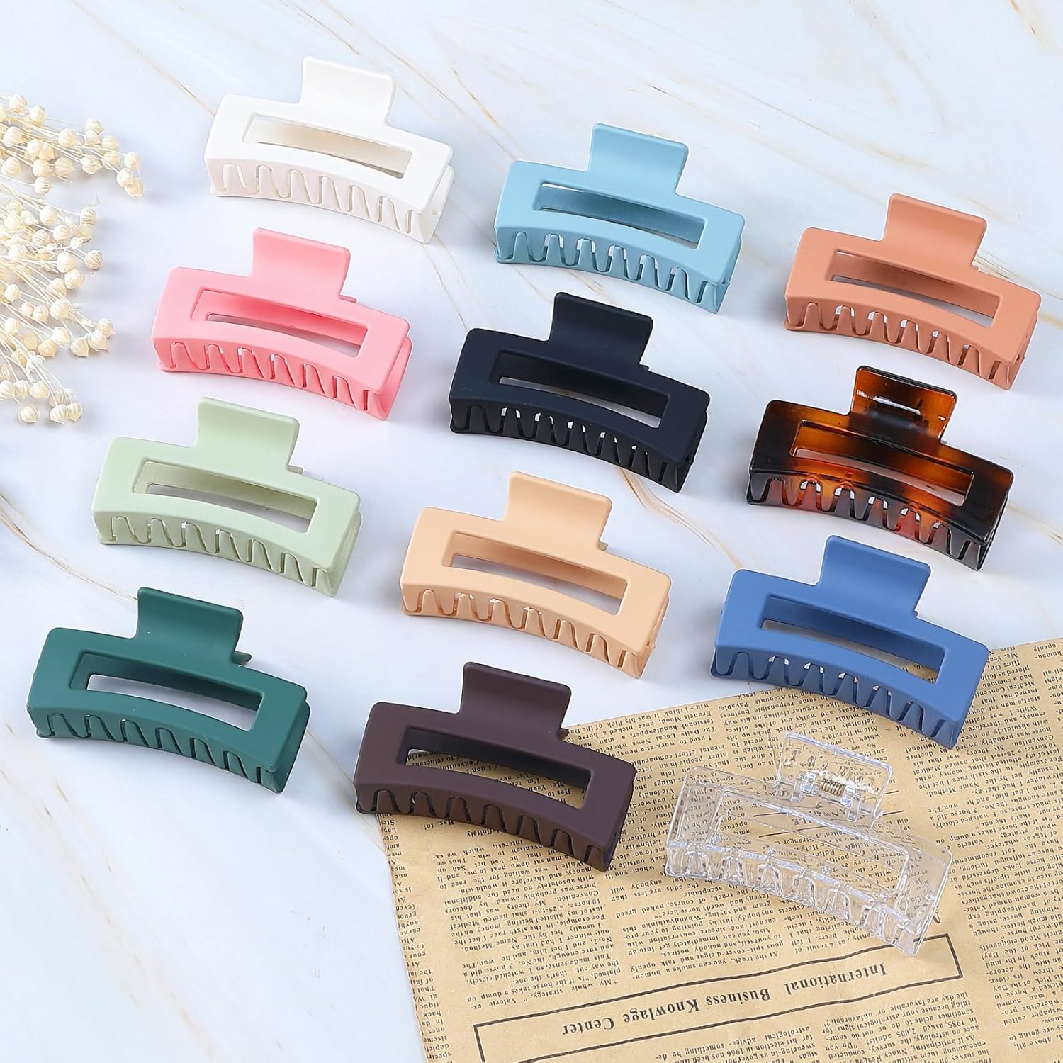 3.5 Inch Medium Hair Accessories - 12 Pcs Square Jaw Clips for Thick and Thin Hair, Rectangular Rectangle Basic Color Hair Clips for Women and Girls