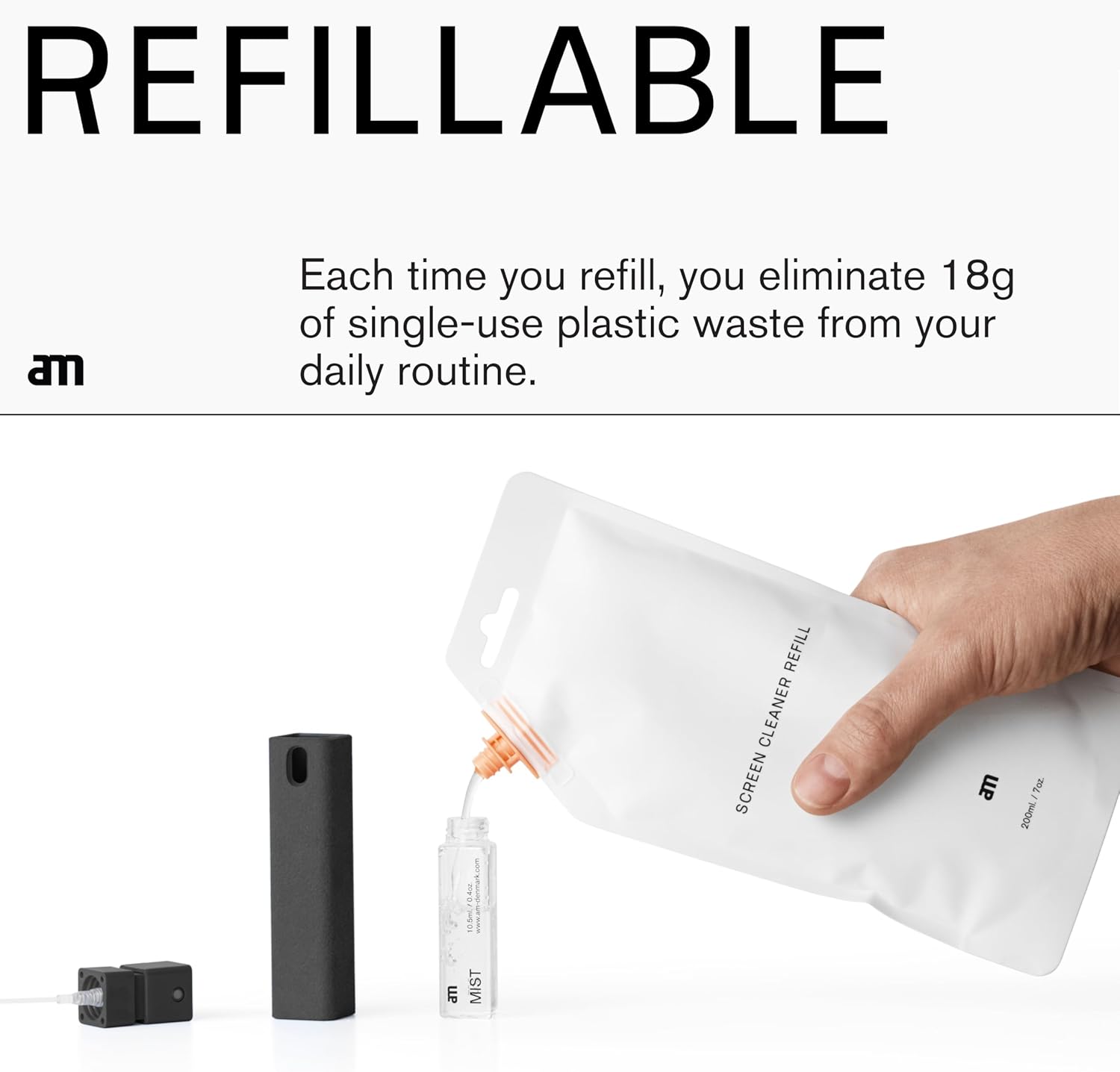 - π± REUSABLE & ECO-FRIENDLY β Skip the waste. This mist spray cleaner is refillable and reusable, supporting sustainable screen care without compromise.