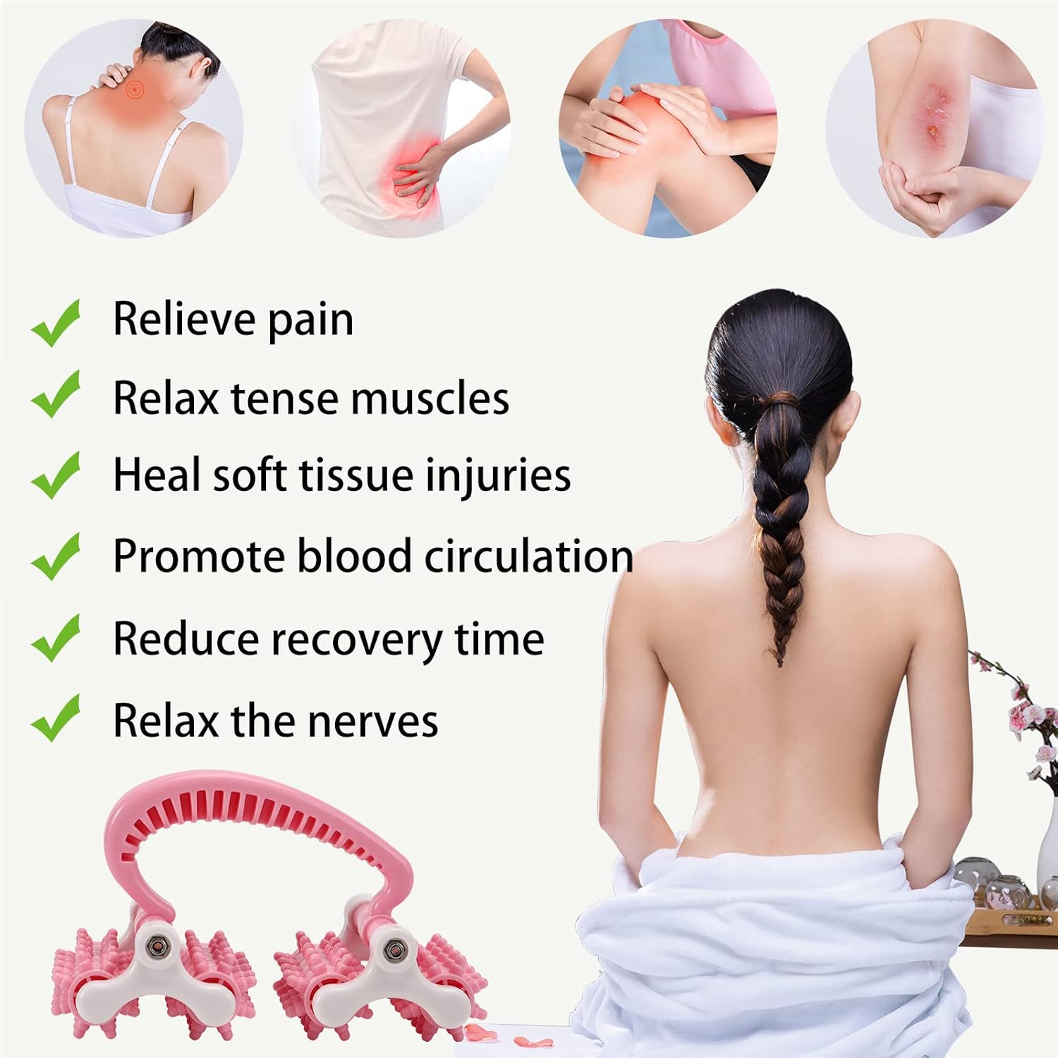 - Full-Body Coverage: With 20 rotating wheels, the cellulite roller covers more area for faster relief. The high-density arrangement ensures no muscle group is missed, from large back muscles to small neck knots. Experience a full-body treatment