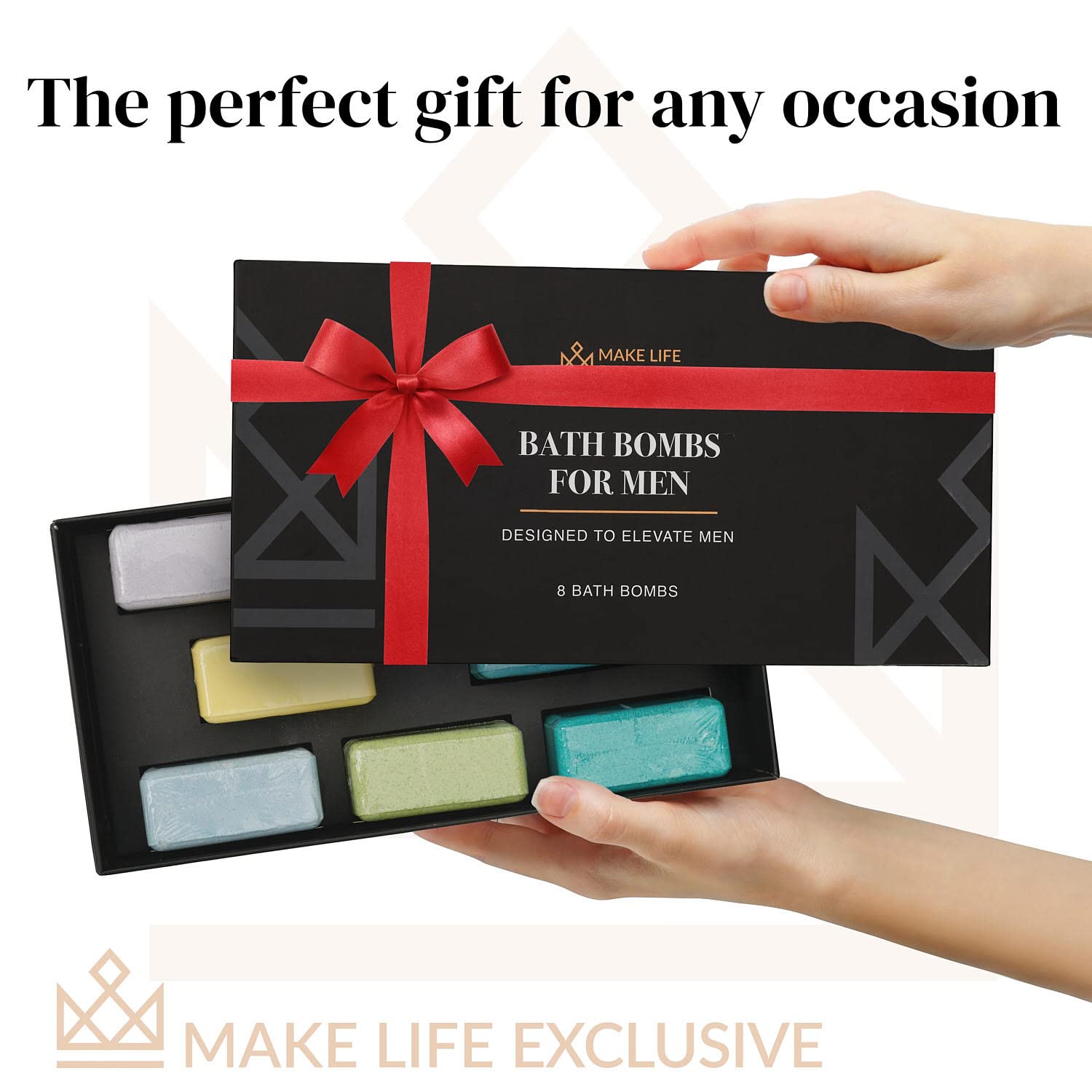 - 👑MAKE LIFE EXCLUSIVE GUARNTEE! - Put your mind at ease with our 1 year money back guarantee! These bath bombs have been tried, tested and voted by men, for men. With these scents, we are confident that everyone will enjoy this aromatic experience!