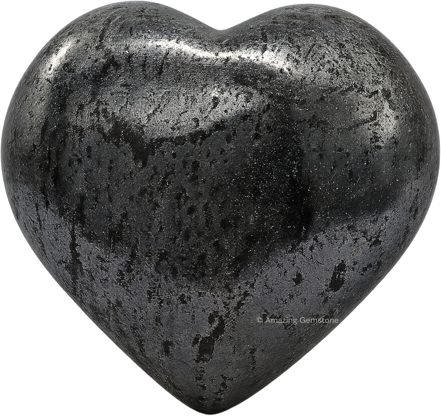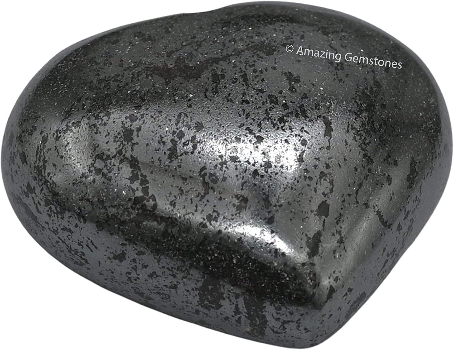 Amazing Gemstone Hematite Crystal Heart Palm Stone - Pocket Massage Worry Stone for Natural Body Chakra Balancing, Reiki Healing and Crystal Grid
