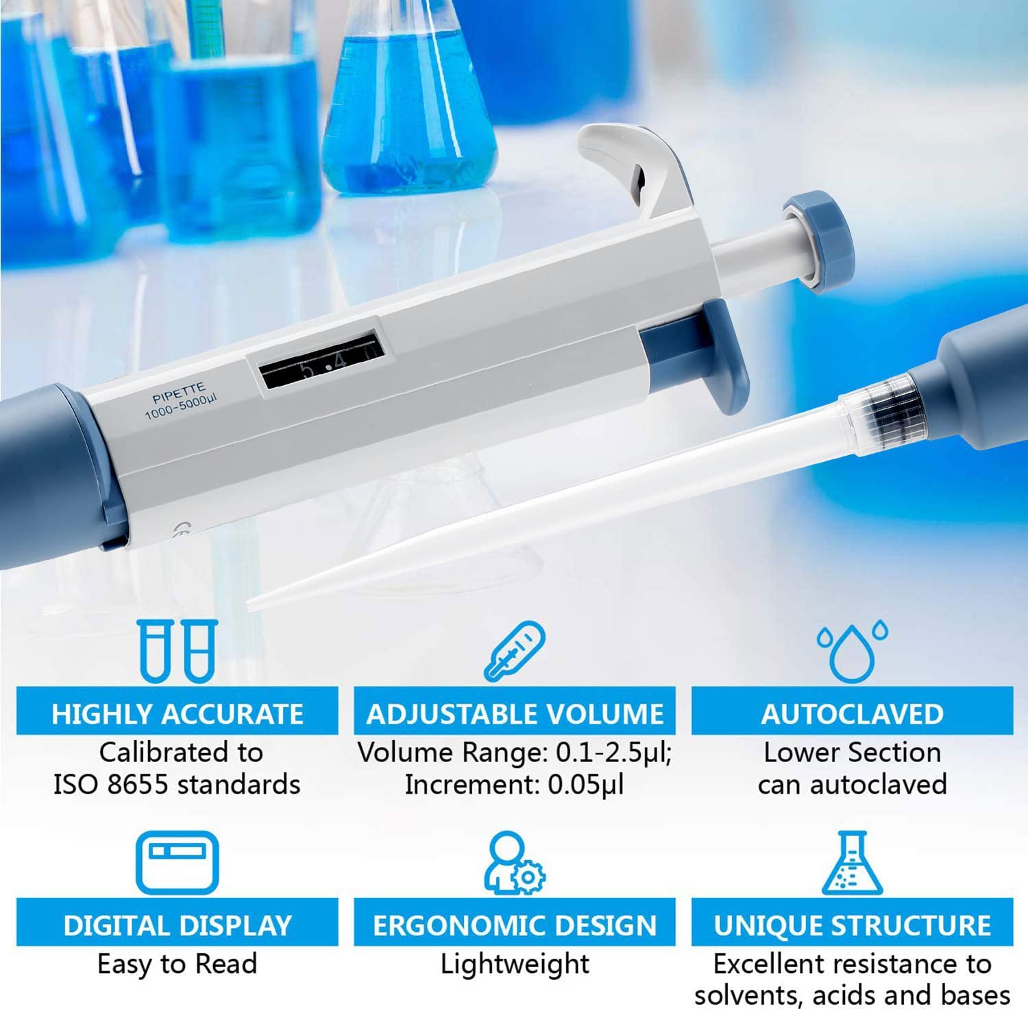 - HIGHLY ACCURATE: Each variable pipette is tested to ensure precision and accuracy. In case the volume inaccurate when you using, you can recalibrate it.