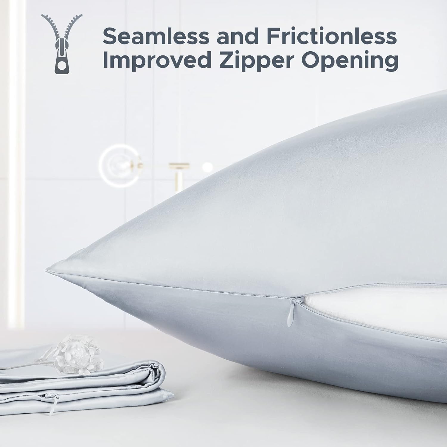 100% Pure Mulberry Silk Pillowcase for Hair and Skin - Allergen Resistant Dual Sides,600 Thread Count Silk Bed Pillow Cases with Hidden Zipper,1pc,King Size,Gray