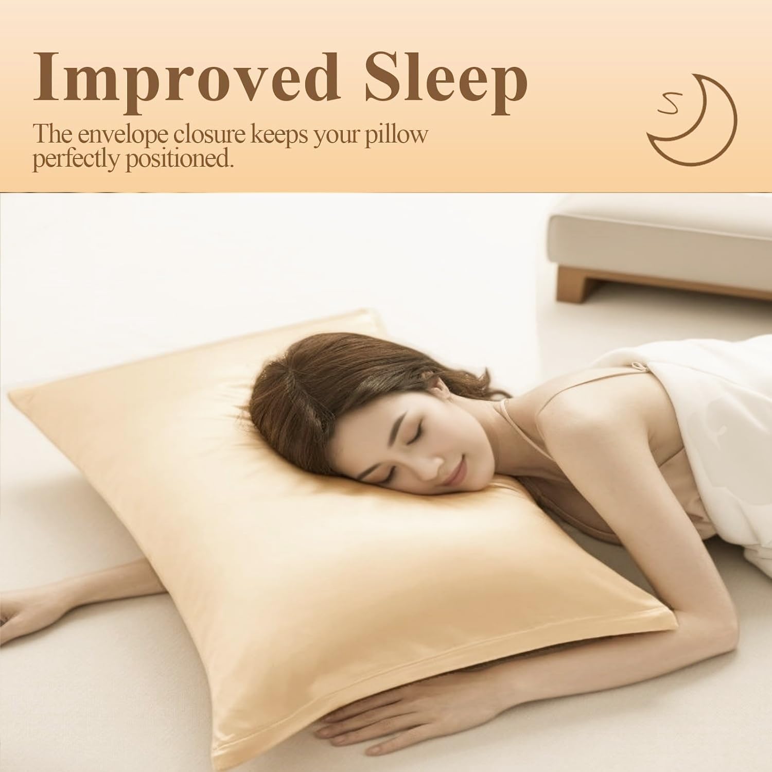- PREMIUM QUALITY FABRIC:Our Satin Pillowcase is made with high quality 100% polyester fabric for optimal softness and easy care. These satin pillowcases are constructed from 100% polyester which gives it its smooth finish and exceptional longevity, even after extensive wash and wear.The hidden zipper closure prevents slipping and ensures that the pillow stays perfectly in the satin pillowcase. And the unique zippered closure is placed on one side, the satin pillow case can be used both sides.