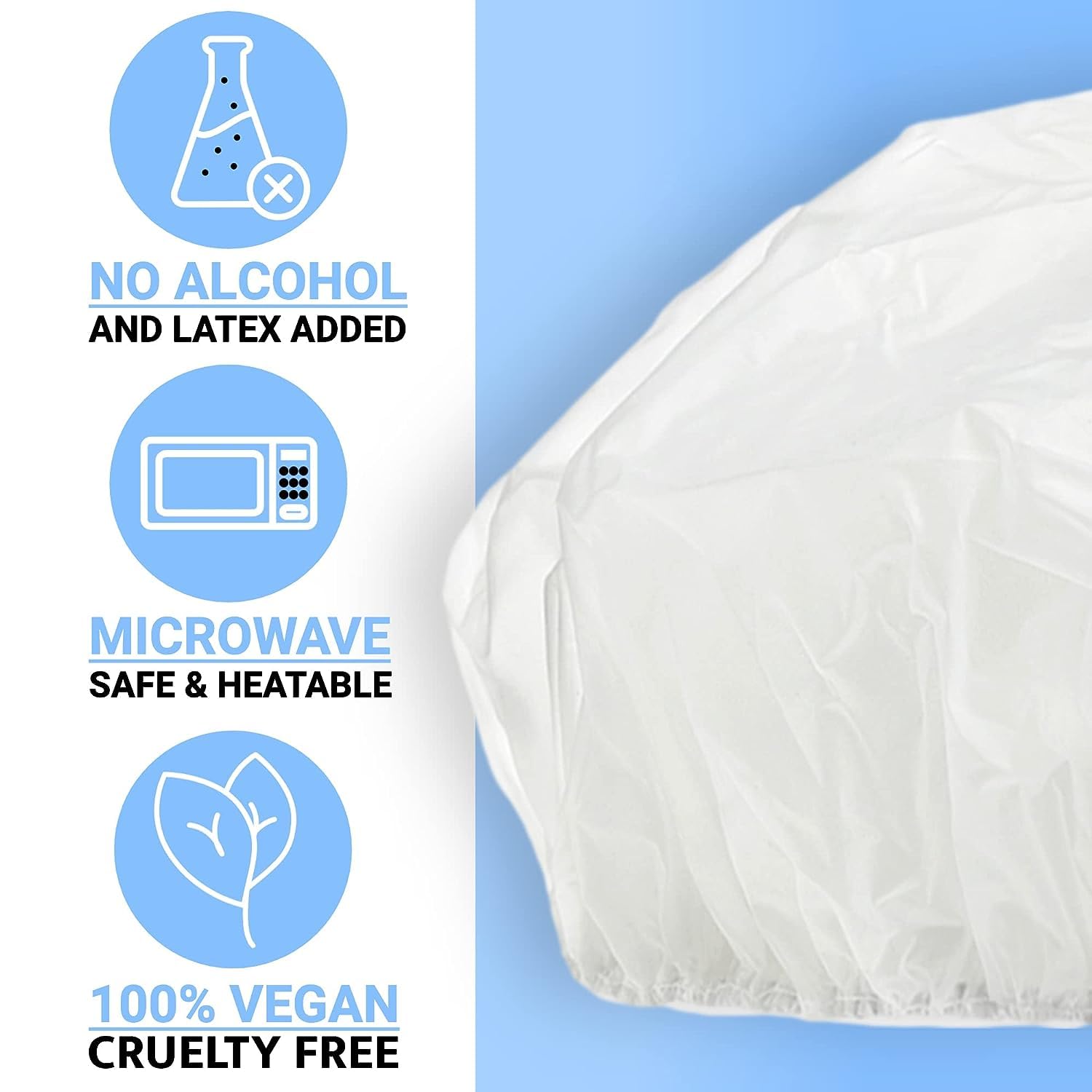 - WATERLESS & EASY TO USE: The shampoo caps no rinse microwavable can be placed in the microwave for 20 seconds if you want to use it warm, or straight from the bag cold. The caps have an elastic band at the bottom to stop dripping