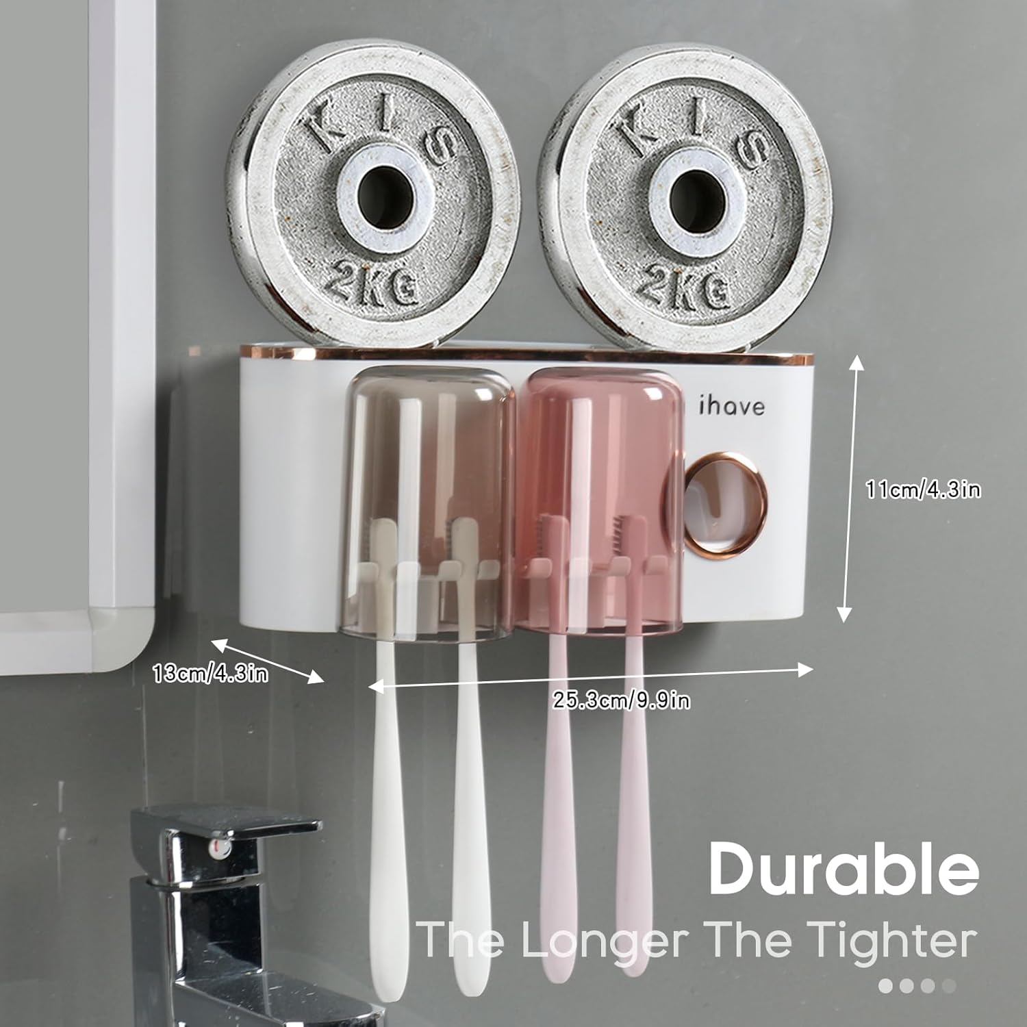 iHave Toothbrush Holders Bathroom Decor with Toothpaste Dispenser, 2 Cups Toothbrush Holder Wall Mounted Bathroom Accessories