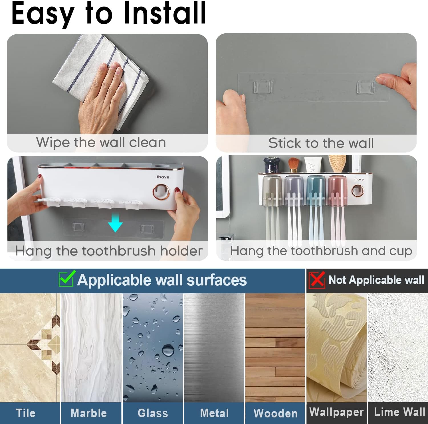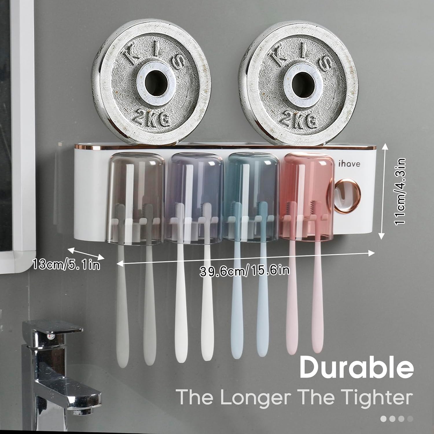 iHave Toothbrush Holders Bathroom Accessories with Toothpaste Dispenser, 4 Cups Toothbrush Holder Wall Mounted Bathroom Decor