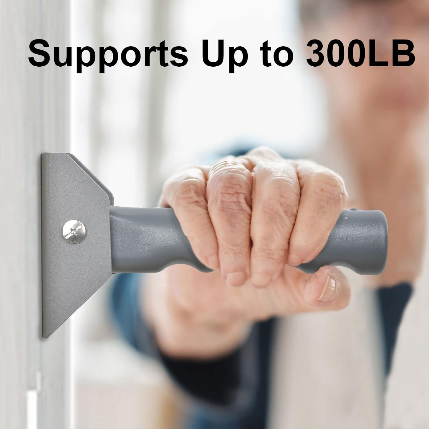 - Lengthened Stair Grip Bars: This doorway flip assist handle entry help upgraded with longer handle in 5", provide users more security and convenient when using. The folding grab handles for elderly outside door support up to 300 Pounds.