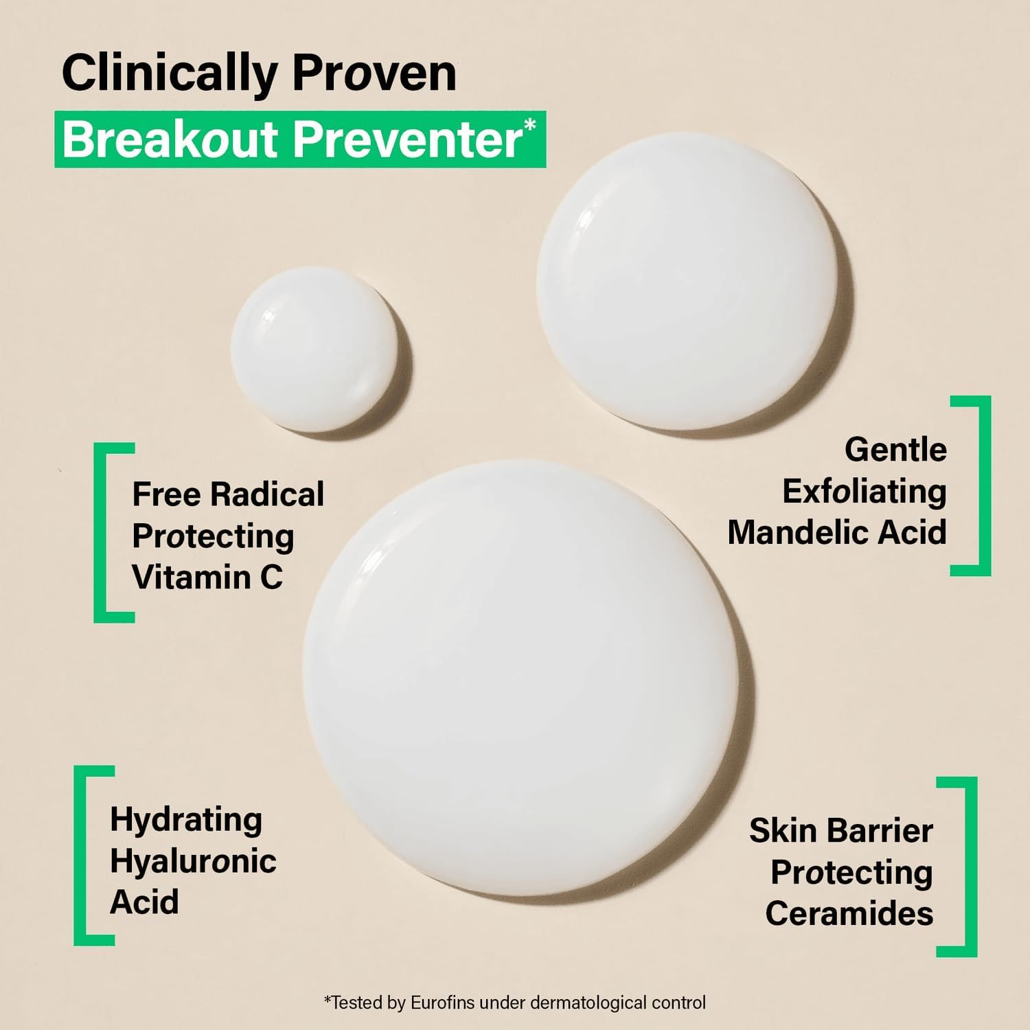 - All-Day Hydration + Skin Barrier Protection: Powered by a complex of Mandelic Acid, an effective but gentle exfoliating acid, along with Niacinamide, Hyaluronic Acid and Ceramides to deeply hydrate, + Vitamins E + C to help shield the skin from environmental aggressors