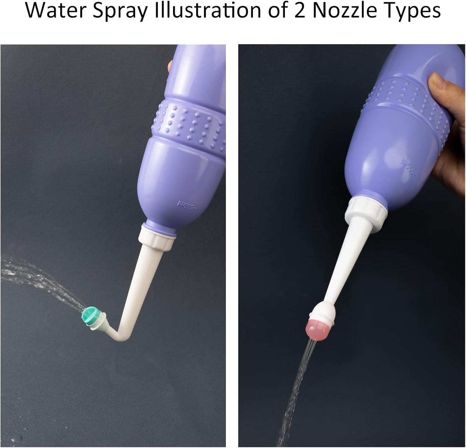 - 2 Nozzle Types that Fulfill Different Cleaning Needs - Please note, for โPack of 1โ, the peri bottle comes with only 1 angled nozzle, for โPack of 2โ, each peri bottle comes with 1 angled nozzle and 1 straight nozzle. Wide-spraying angled nozzle is more suitable for perineal cleaning with the bottle held upside down and can get perfect aim for hard-to-reach areas, fast-spraying straight nozzle can be used for a quick wash for baby buttocks after pooping.