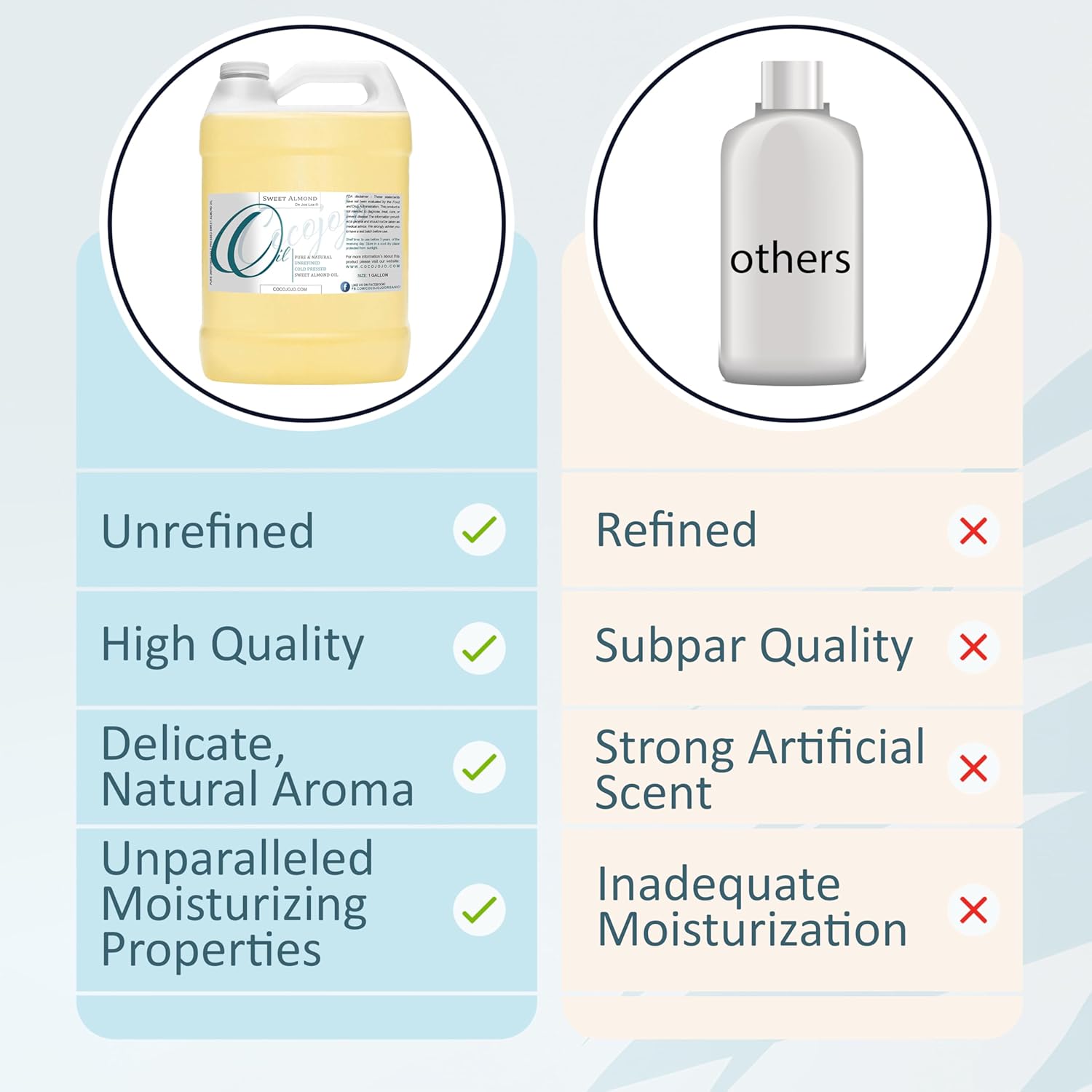 Sweet Almond Oil 1 Gallon 100% Pure Natural Cold Pressed Unrefined Extra Virgin 128 fl oz - for Hair Skin Body Nail and Beard Carrier Oil for Essential Oils - Moisturizing, Hydrating, & Nourishing